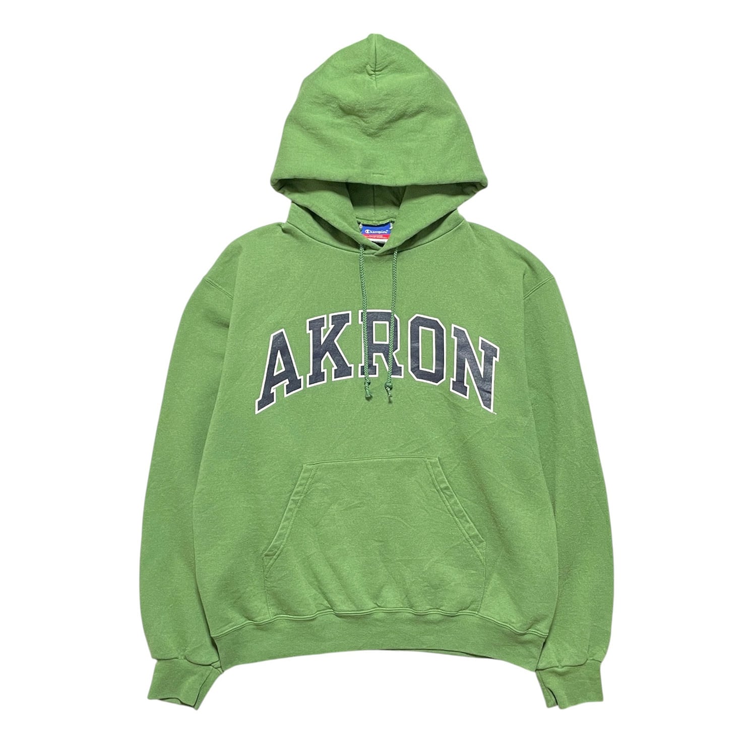 USA 古着 Champion チャンピオン アクロン大学 カレッジ スウェット パーカー ロゴ プリント メンズM グリーン フーディー BE0825