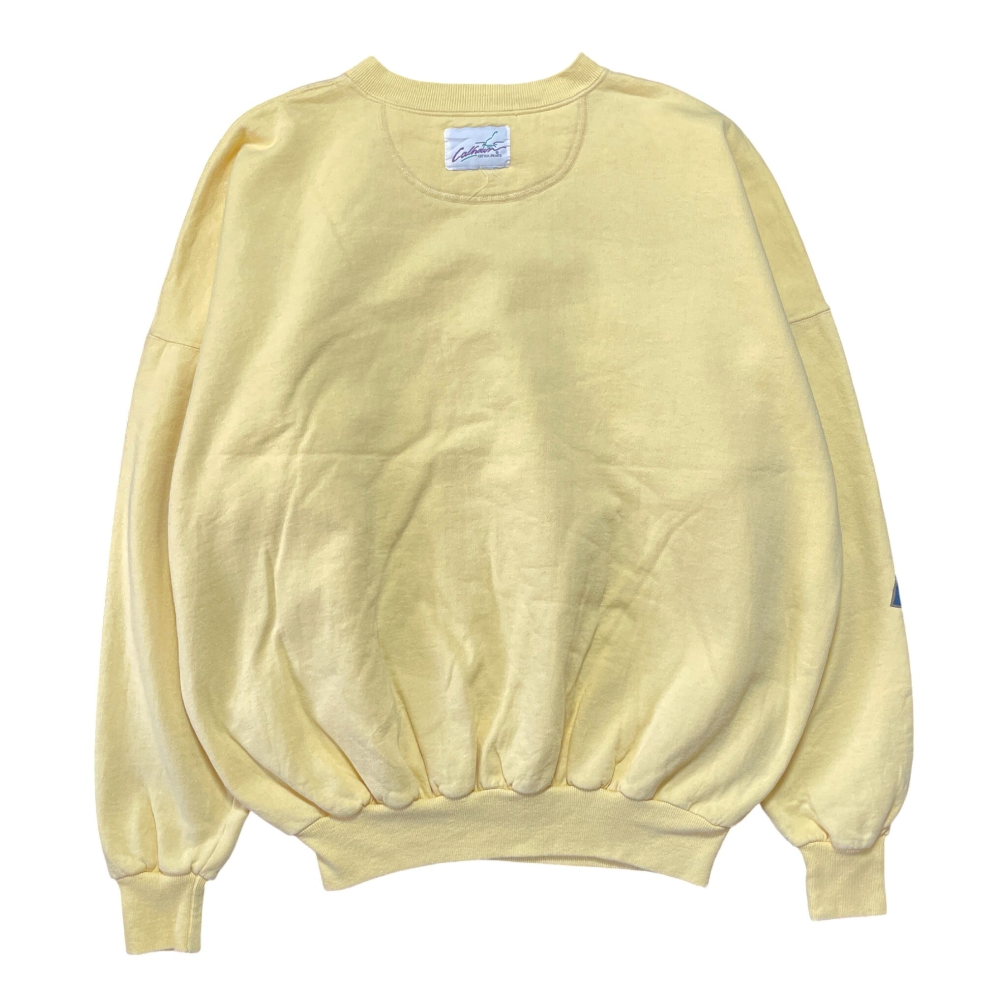 古着 カナダ製 90S ミシガン大学 カレッジ スウェット トレーナー 大判プリント イエロー クルーネック 大きいサイズ BD2718