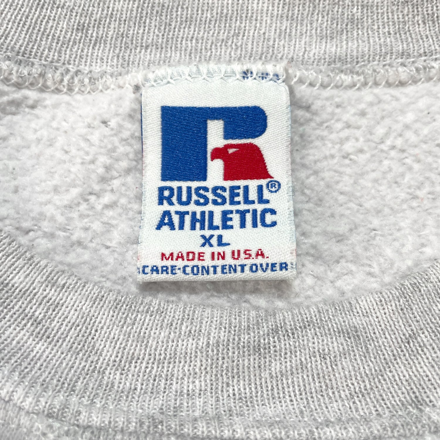 古着 USA製 90S Russell ラッセル シーワールド ヴィンテージ 前V スウェット トレーナー 刺繍 ワンポイント グレー メンズXL クルーネック BD2715