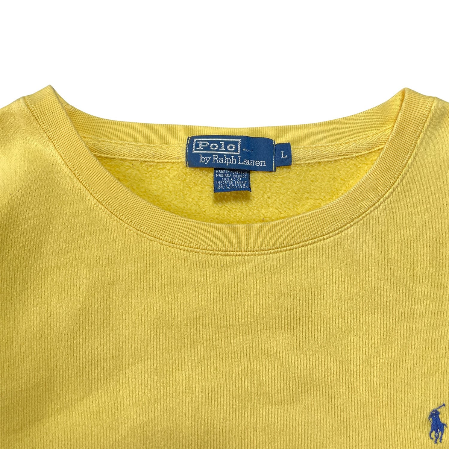 USA 古着 Polo by Ralph Lauren ポロバイラルフローレン スウェット トレーナー 刺繍 ロゴ イエロー クルーネック メンズL BD2719