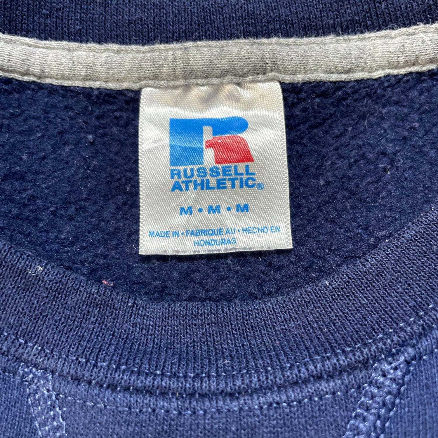 USA 古着 Russell ラッセル 前V スウェット トレーナー プリント ロゴ ネイビー メンズM クルーネック BD2732