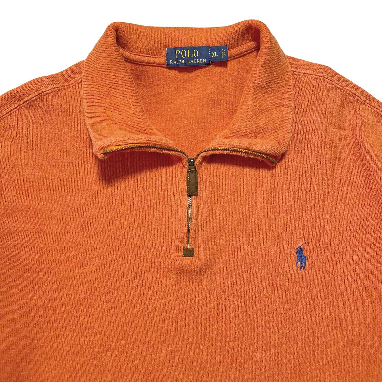 USA 古着 POLO RALPH LAUREN ポロ ラルフローレン コットンニット ハーフジップ スウェット オレンジ メンズXL BD2782