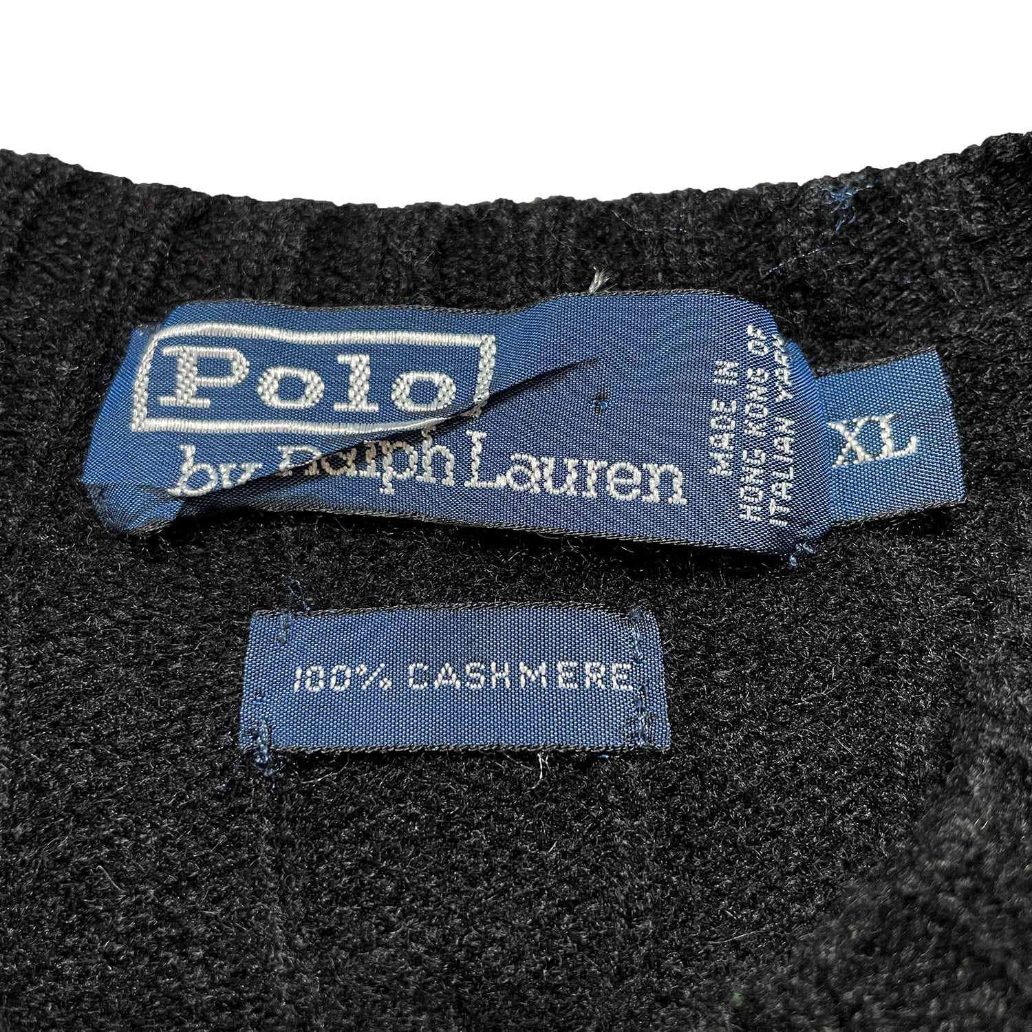 USA 古着 Polo by Ralph Lauren ポロ バイ ラルフローレン カシミヤ クルーネック ケーブル セーター ブラック メンズXL カシミア BJ0981