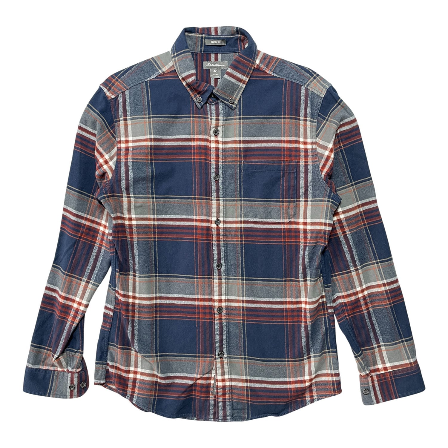 USA 古着 Eddie Bauer エディーバウアー アウトドア フランネル コットン チェック柄 長袖シャツ ネイビー メンズM BG0987