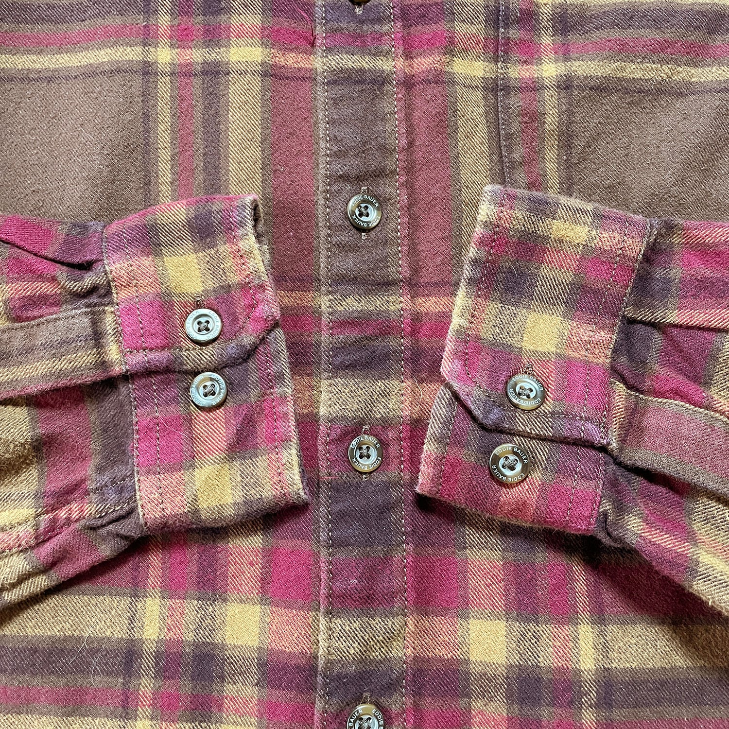 USA 古着 Eddie Bauer エディーバウアー アウトドア フランネル コットン チェック柄 長袖シャツ ブラウン メンズL BG0989