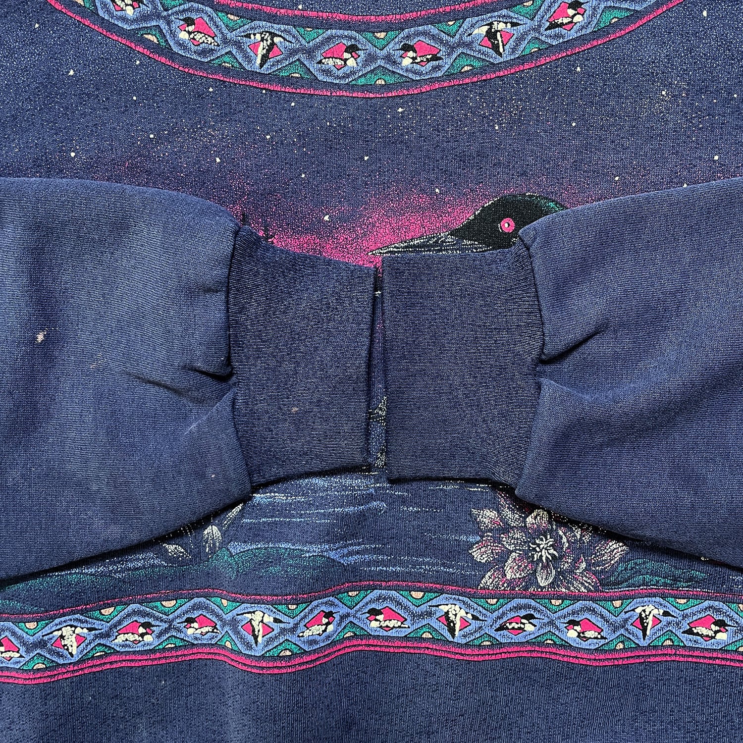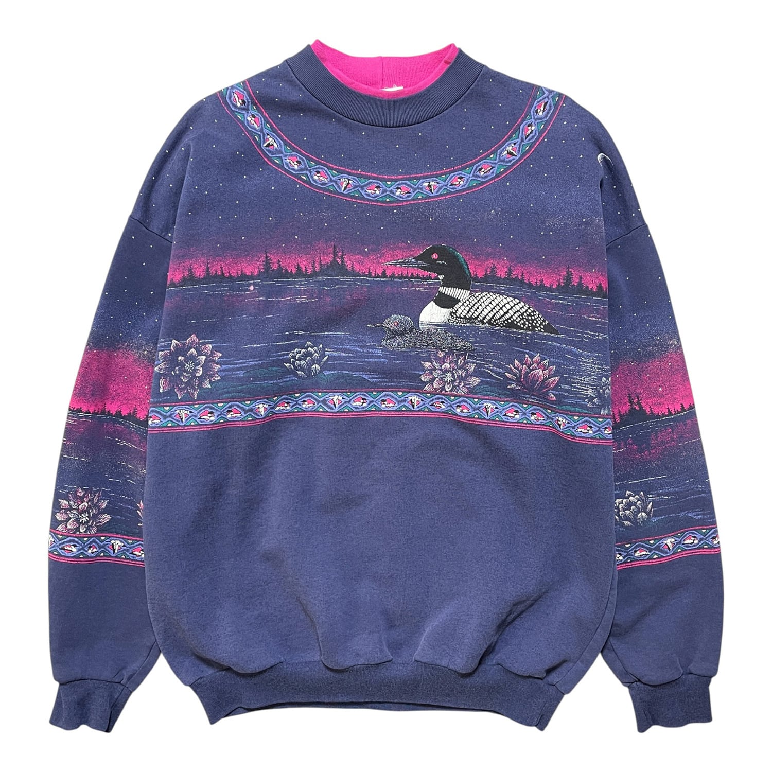 USA 古着 90S ヴィンテージ スウェット トレーナー 鴨 オーバープリント ネイビー クルーネック BD2680