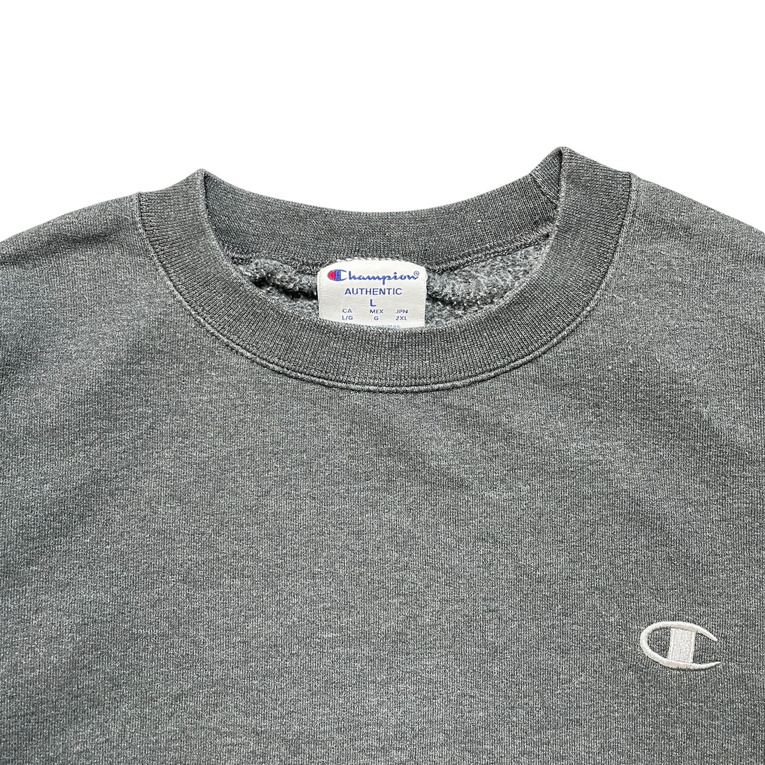 USA 古着 Champion チャンピオン スウェット トレーナー ロゴ Cマーク 刺繍 チャコール メンズL クルーネック BD2668