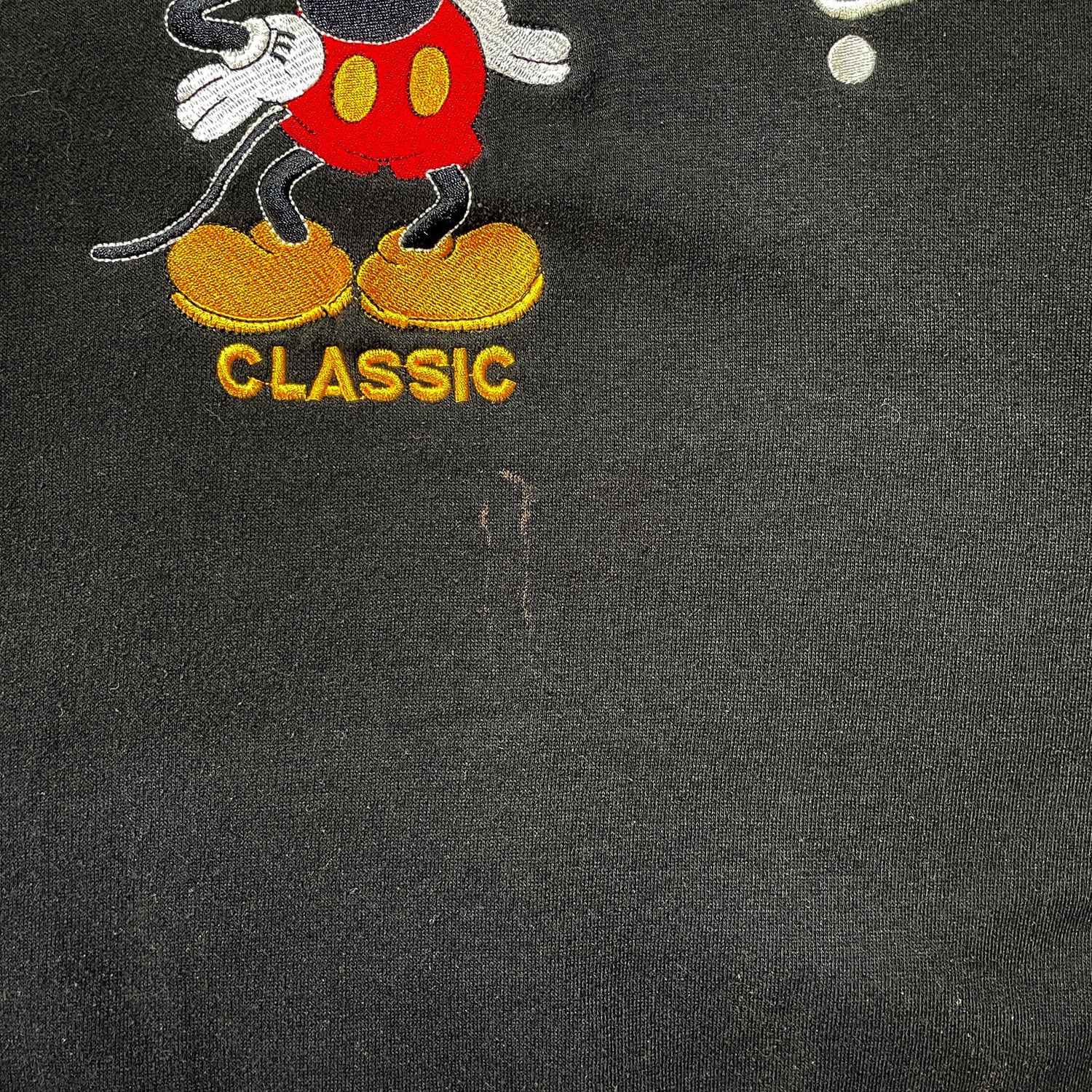 USA 古着 90S Disney ディズニー ミッキーマウス ヴィンテージスウェット トレーナー 刺繍 ブラック メンズXL クルーネック BD2735