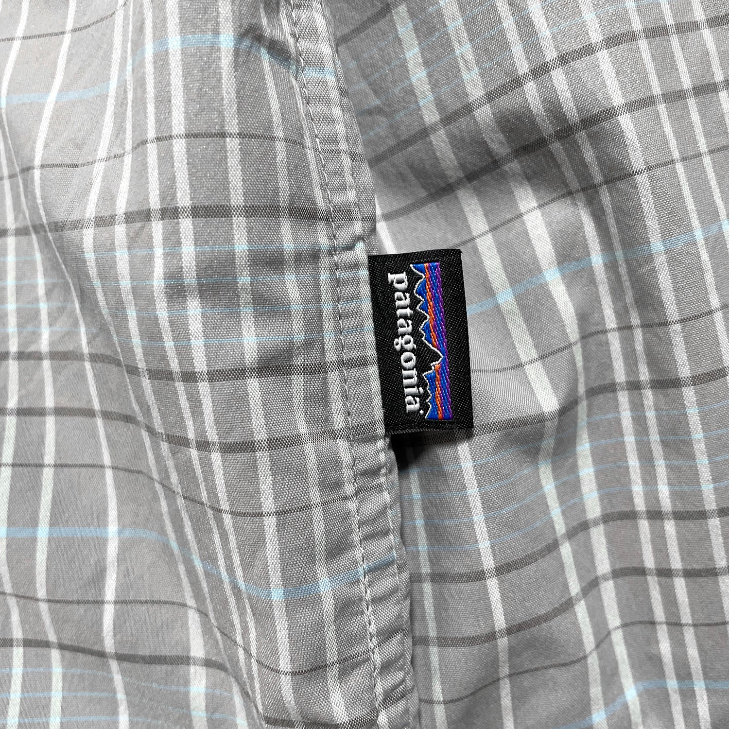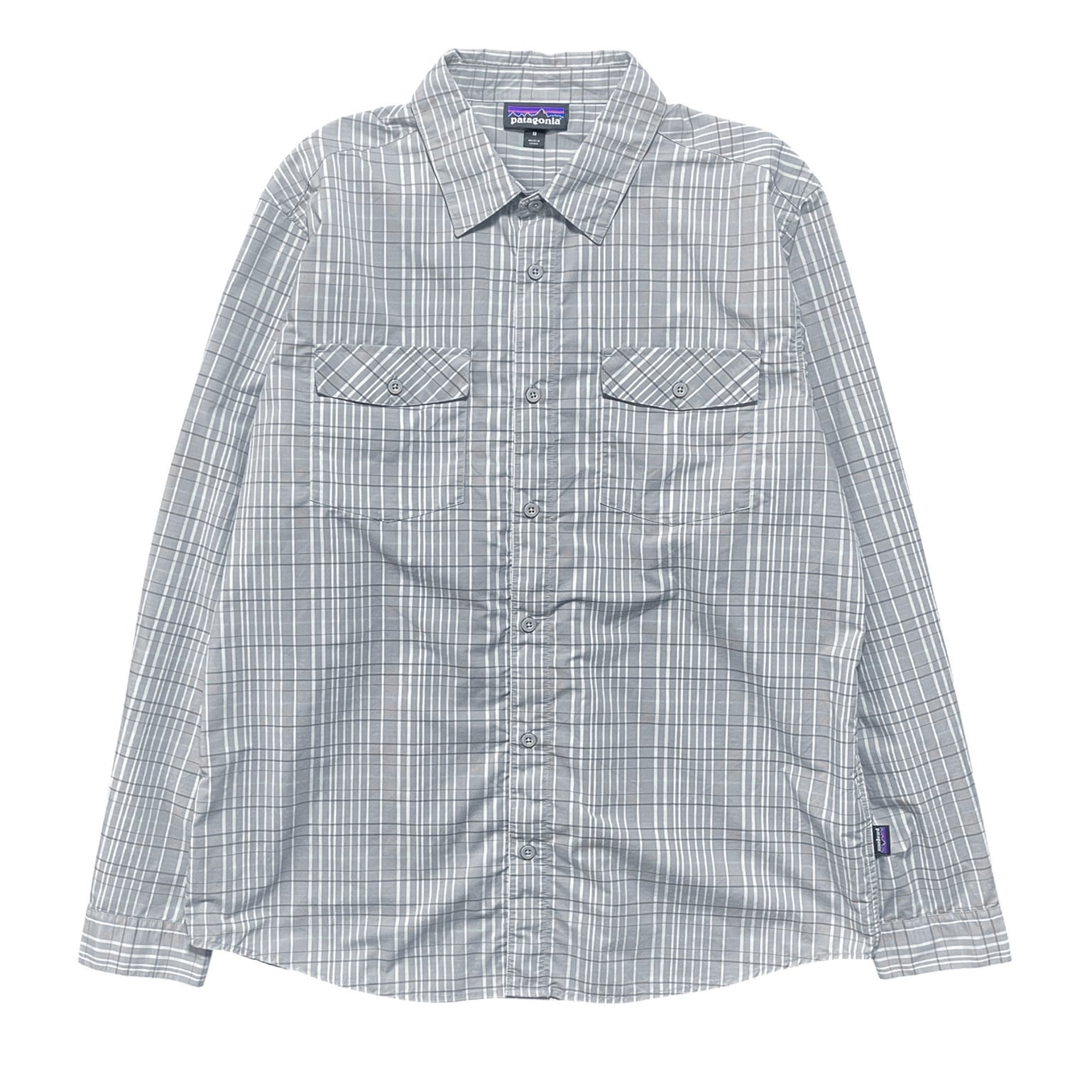 USA 古着 patagonia パタゴニア アウトドア ナイロン チェック柄 長袖シャツ メンズM ナイロンシャツ グレー系 BG1020