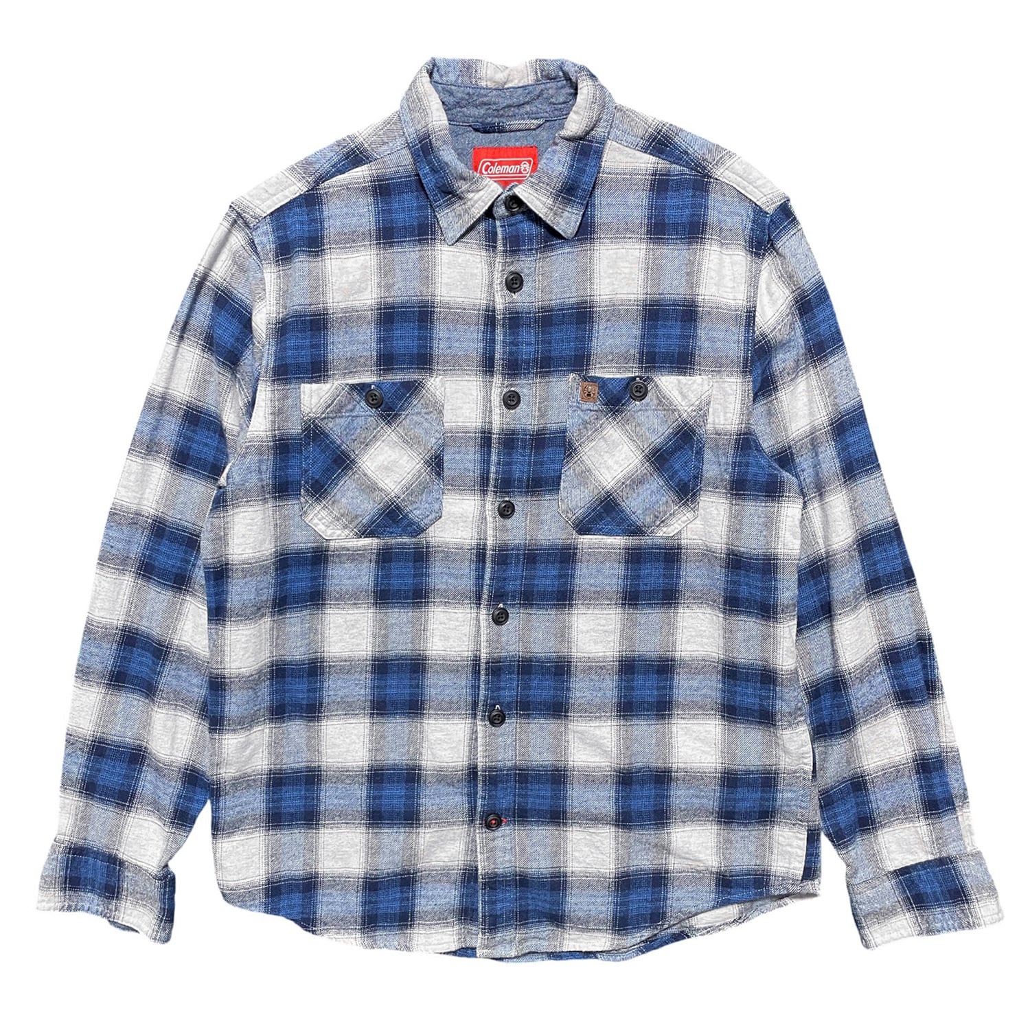 USA 古着 Coleman コールマン アウトドア コットン チェック柄 長袖シャツ ライトフランネル ネルシャツ メンズM ブルー/ホワイト BG0996