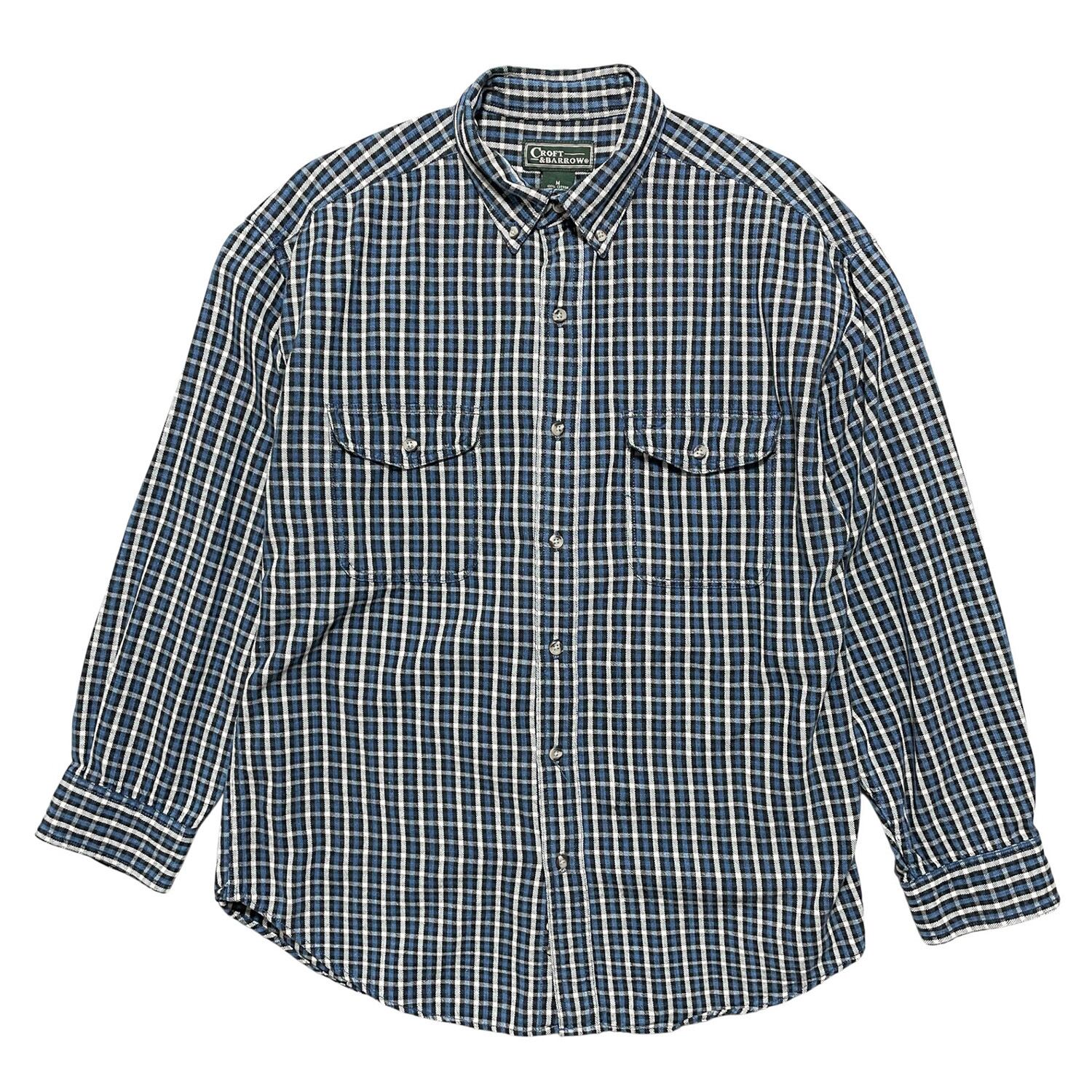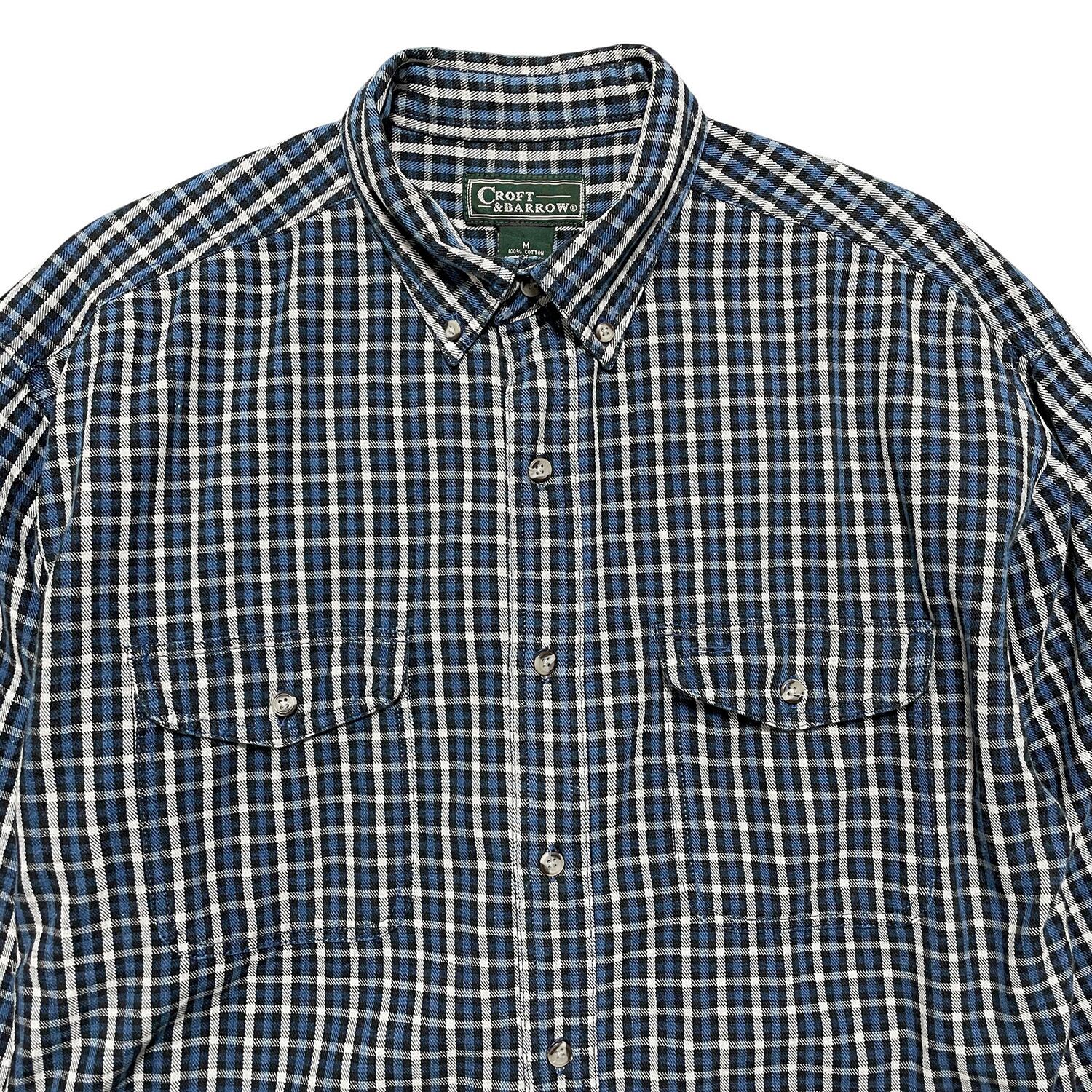 CROFT&BARROW クロフト&バロー コットン チェック柄 長袖シャツ ネルシャツ メンズM ブルー BG0999