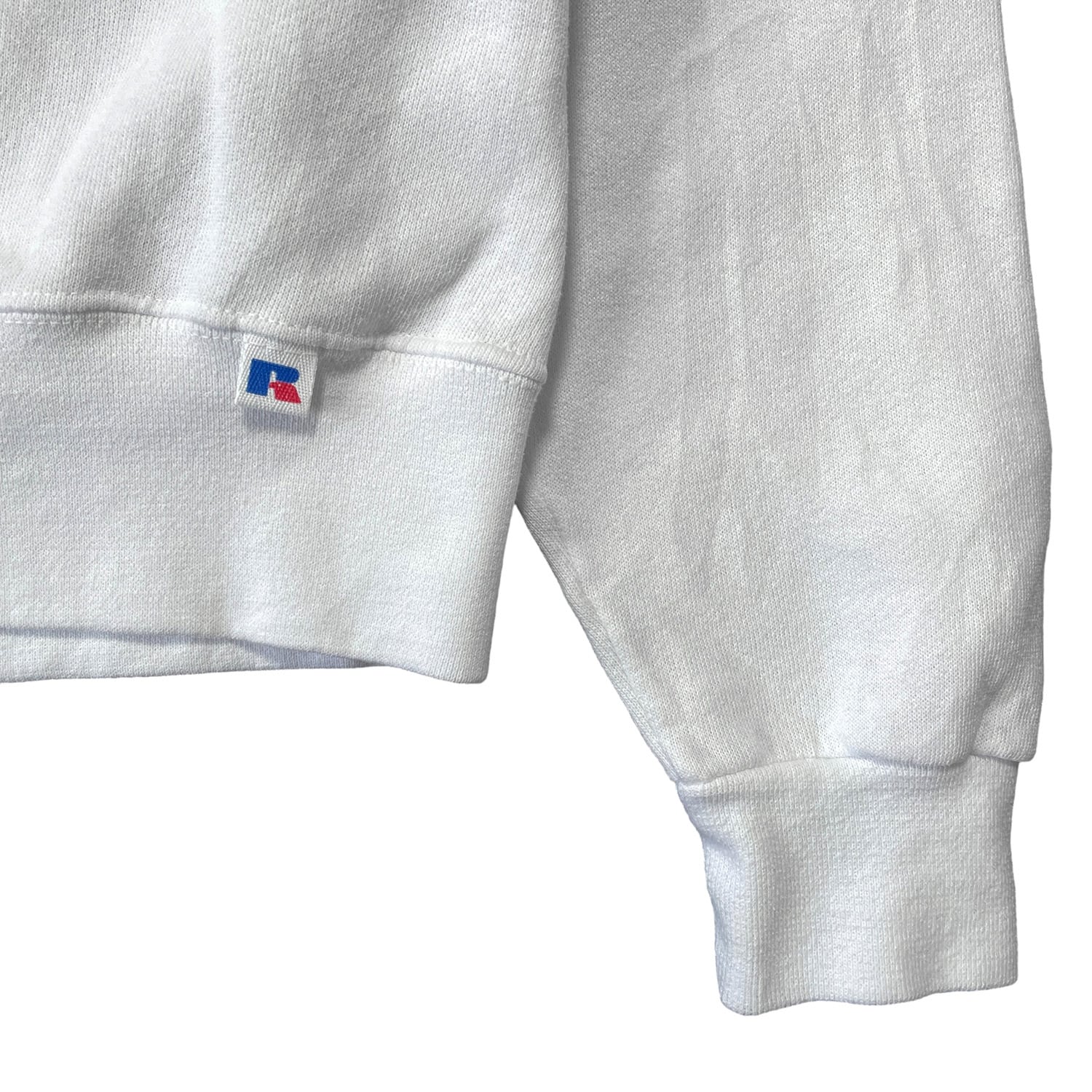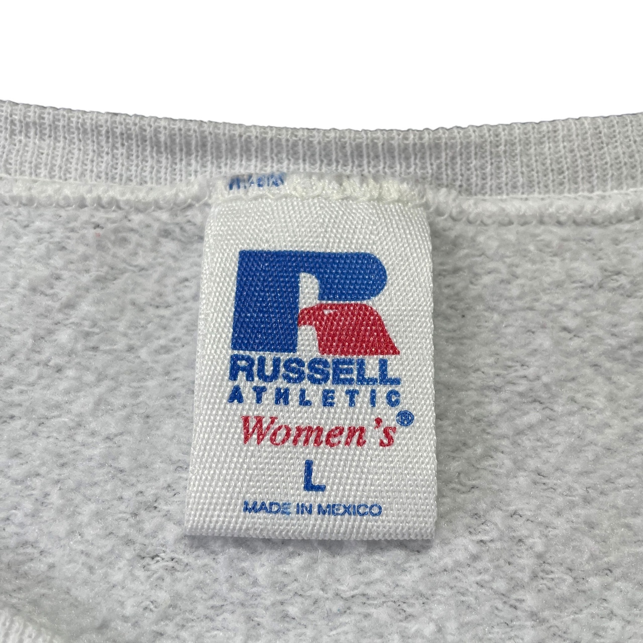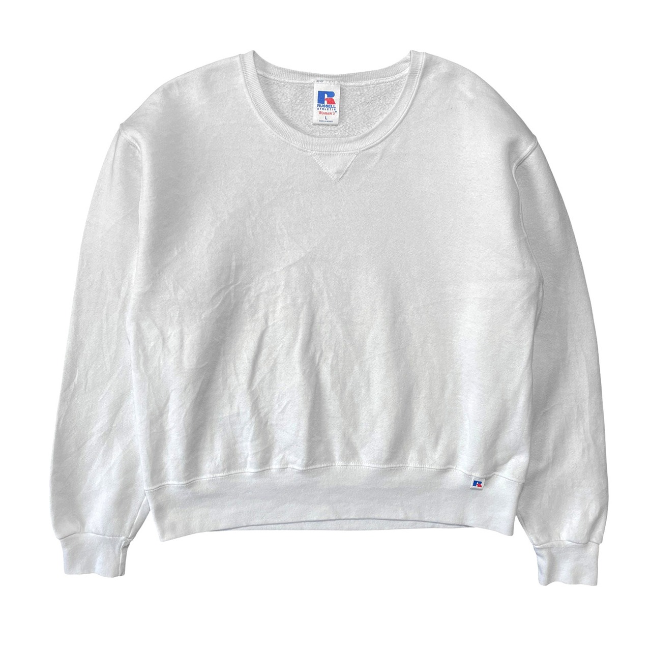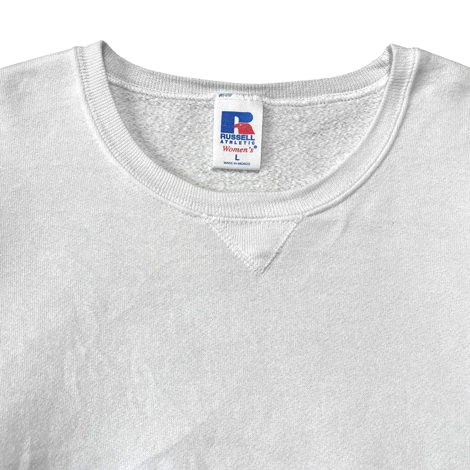 USA 古着 00S Russell ラッセル 無地 前V スウェット トレーナー ブランク ホワイト レディースL クルーネック BD2740
