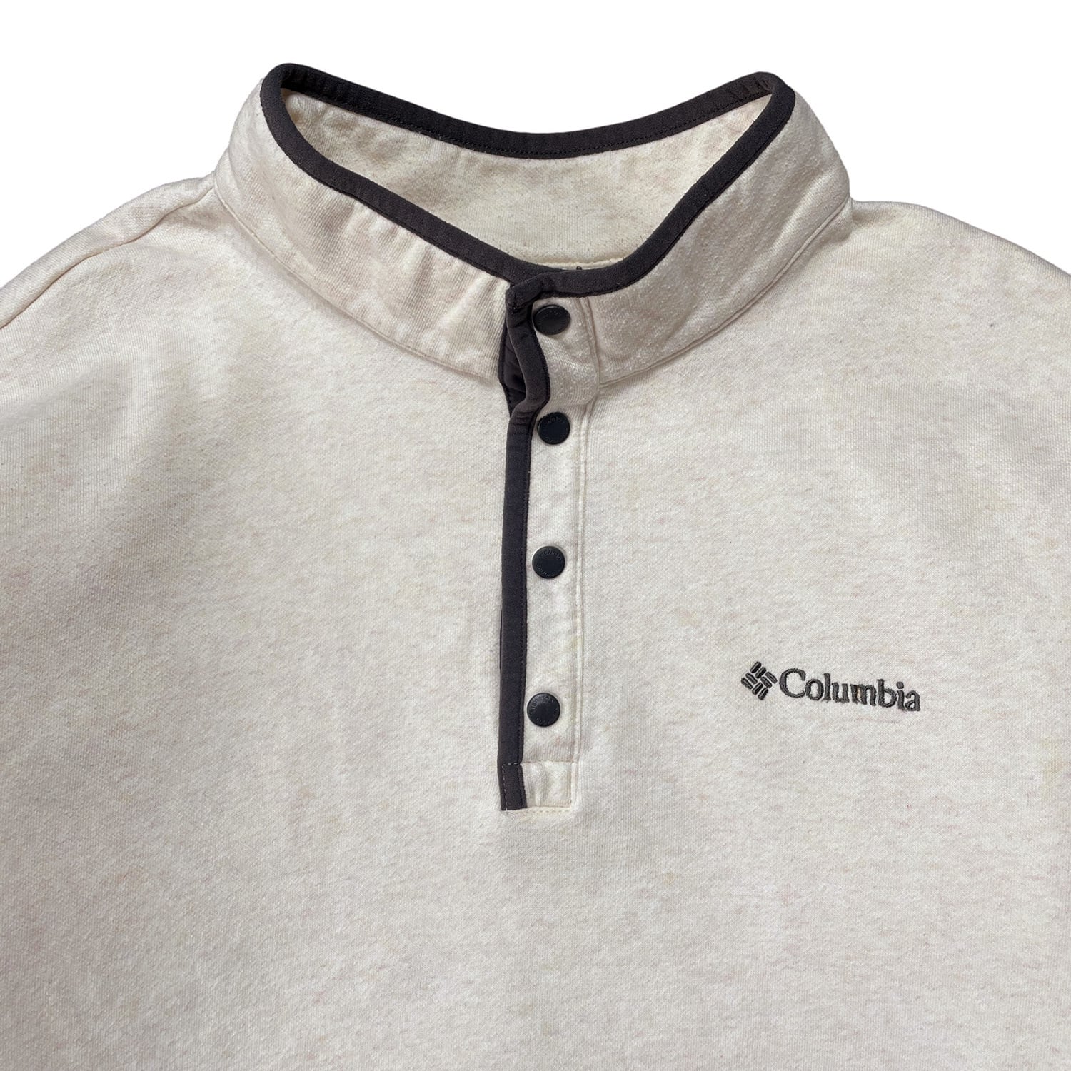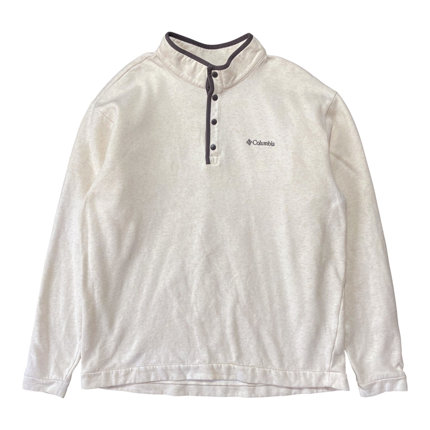 USA 古着 Columbia コロンビア スウェット トレーナー スナップボタン ワンポイント ロゴ メンズXL アイボリー アウトドア BD2742