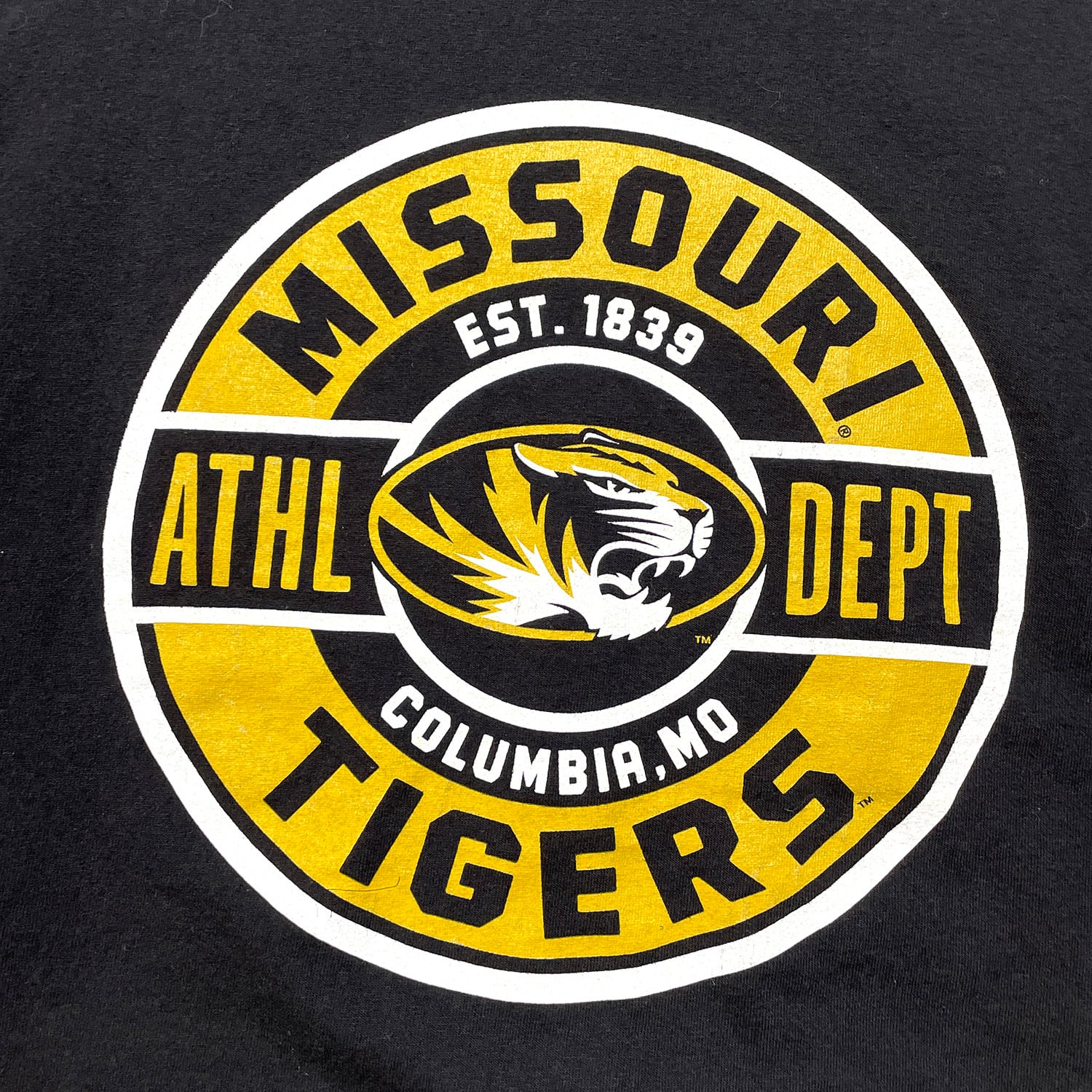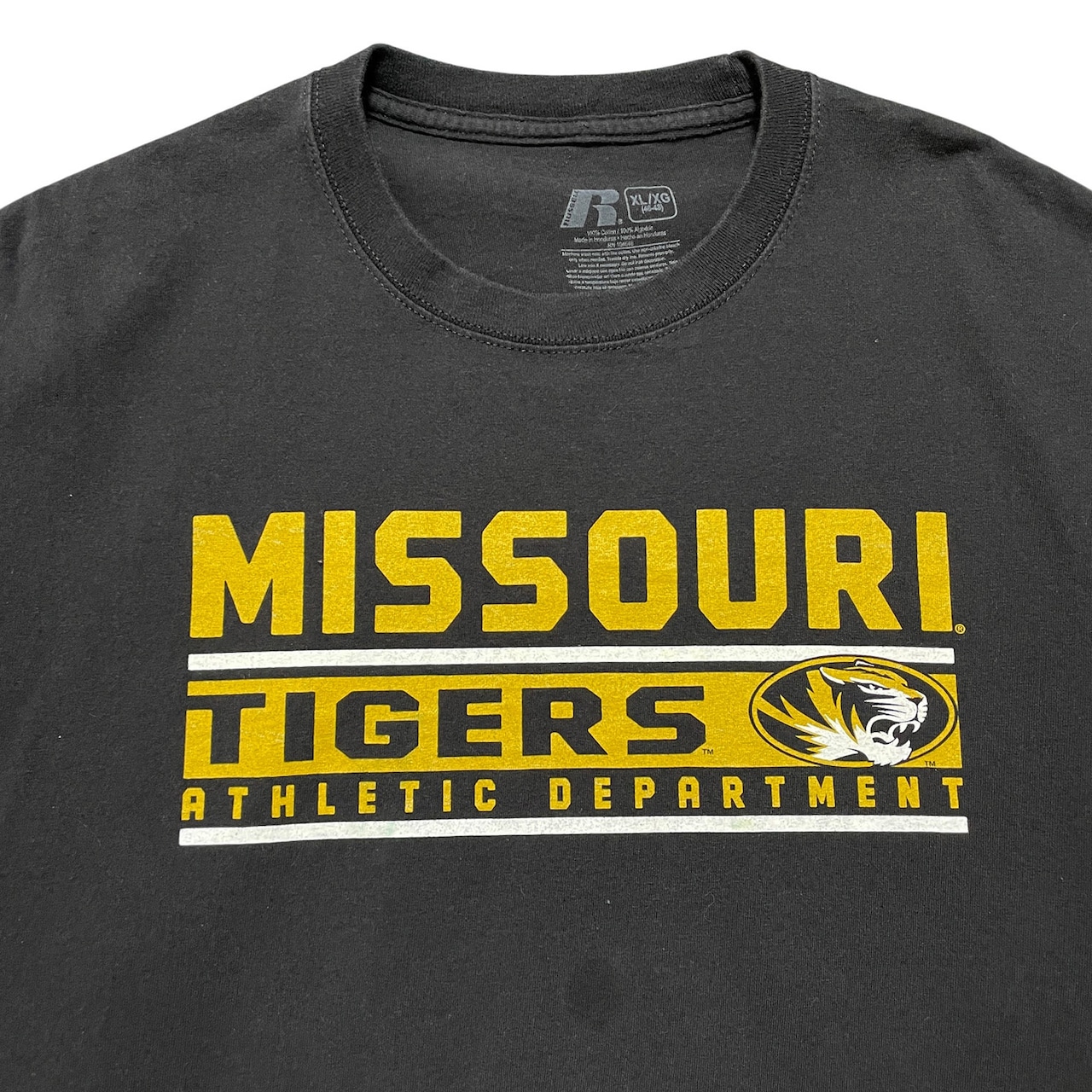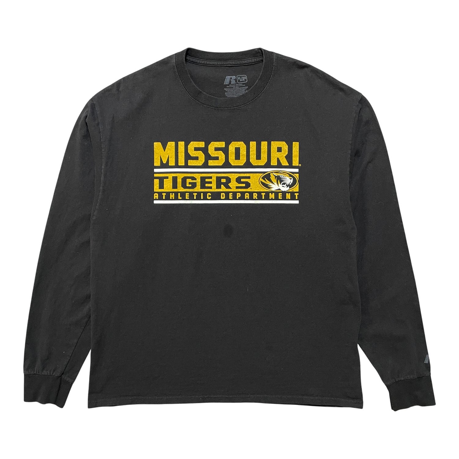 USA 古着 Russell ラッセル ミズーリ タイガース コットン 長袖Tシャツ ロンT メンズXL ブラック ヴィンテージ BA4799