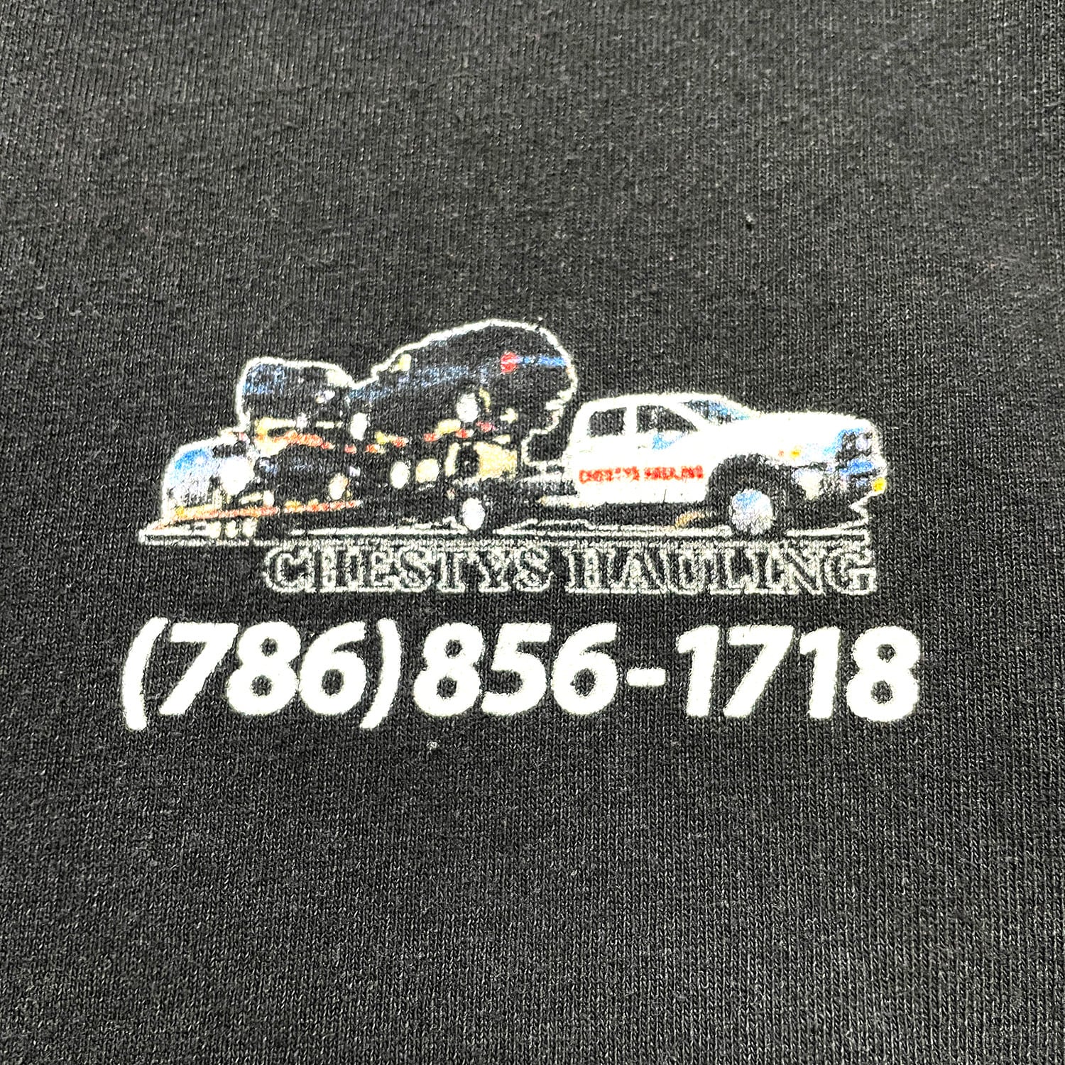 USA古着 CHESTYS HAULING チェスティハウリング 企業系 コットン 長袖Tシャツ ロンT メンズL ブラック ヴィンテージ BA4801