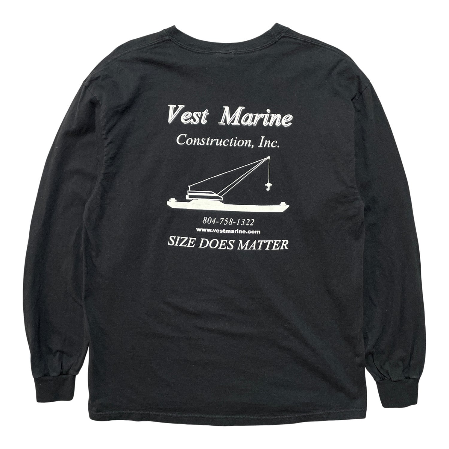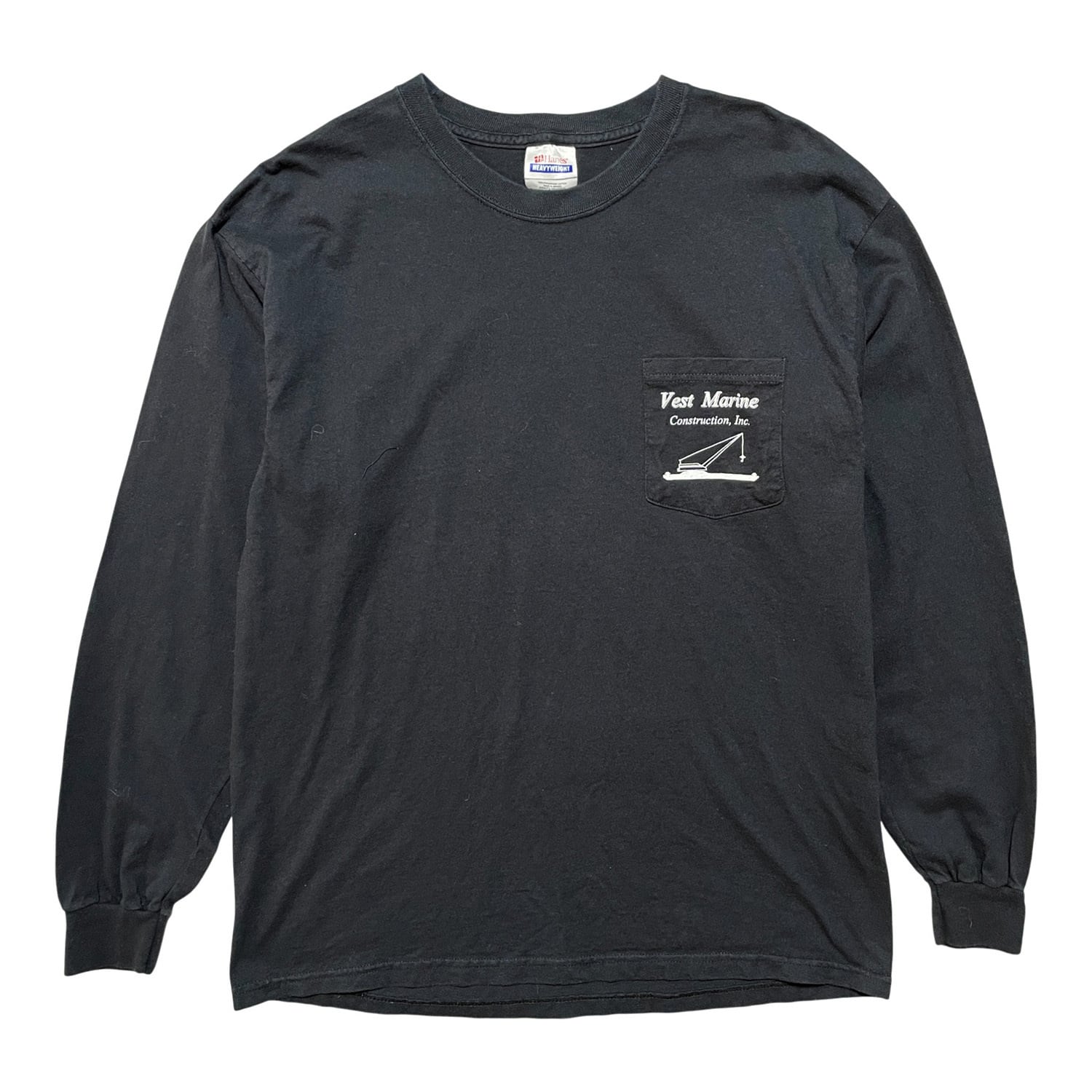 USA 古着 Vest Marine Construction Inc. ヴィンテージ 企業系 コットン 長袖Tシャツ ロンT メンズL ブラック BA4802
