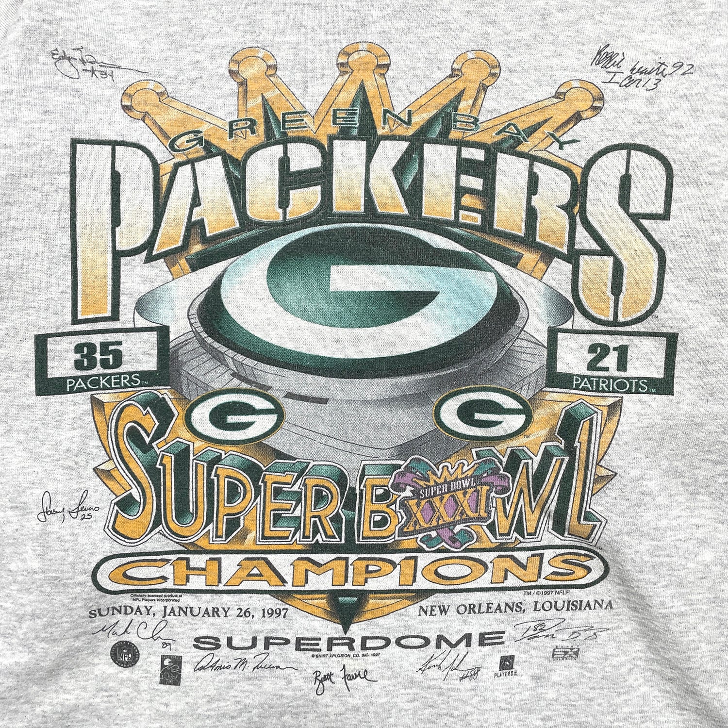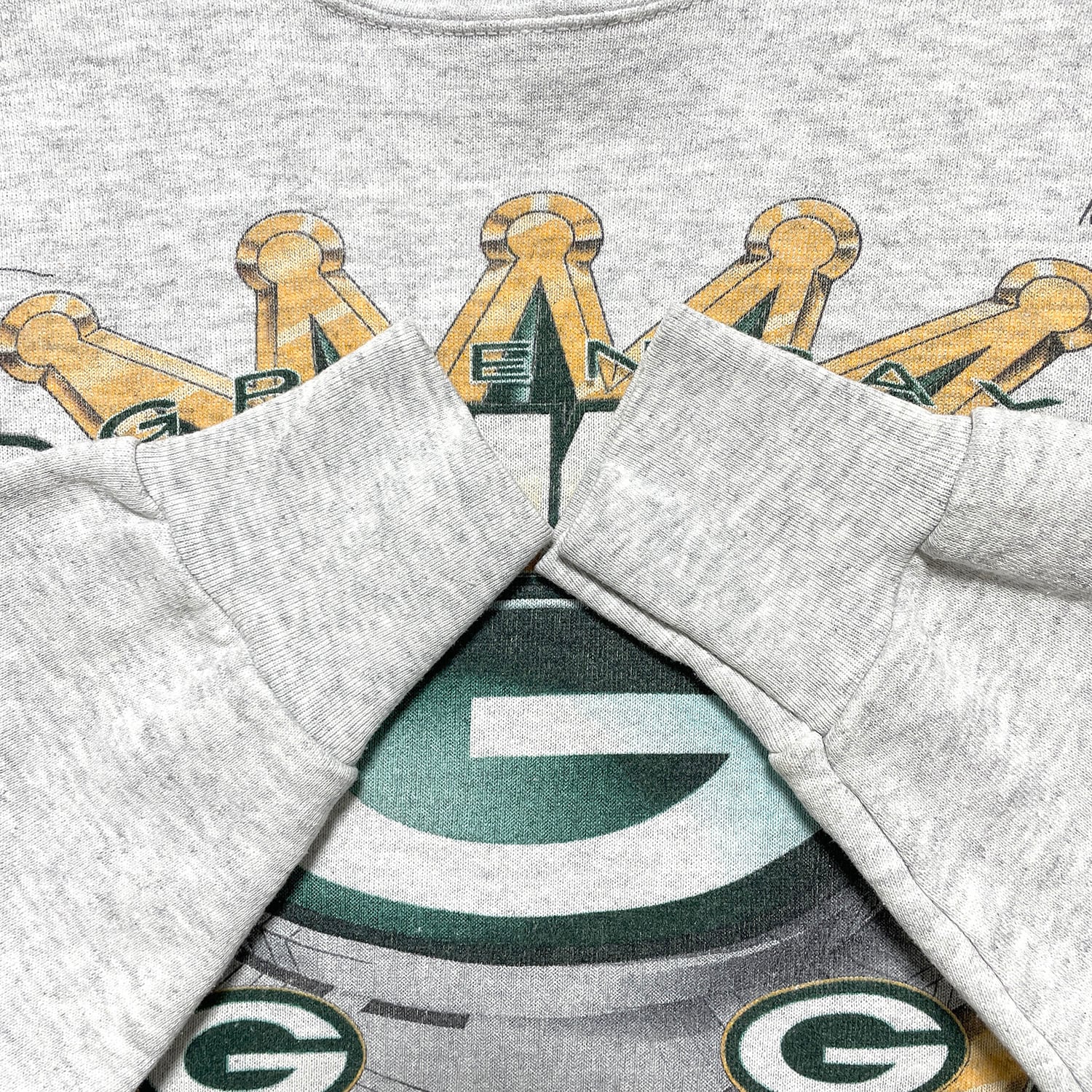 古着 USA製 90S NFL グリーンベイパッカーズ ヴィンテージ 短丈 スウェット トレーナー ロゴ プリント グレー レディースL BD2756