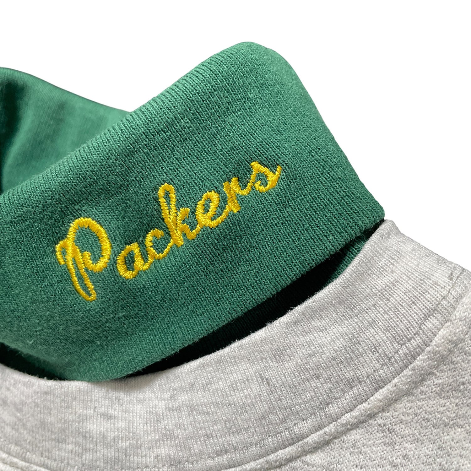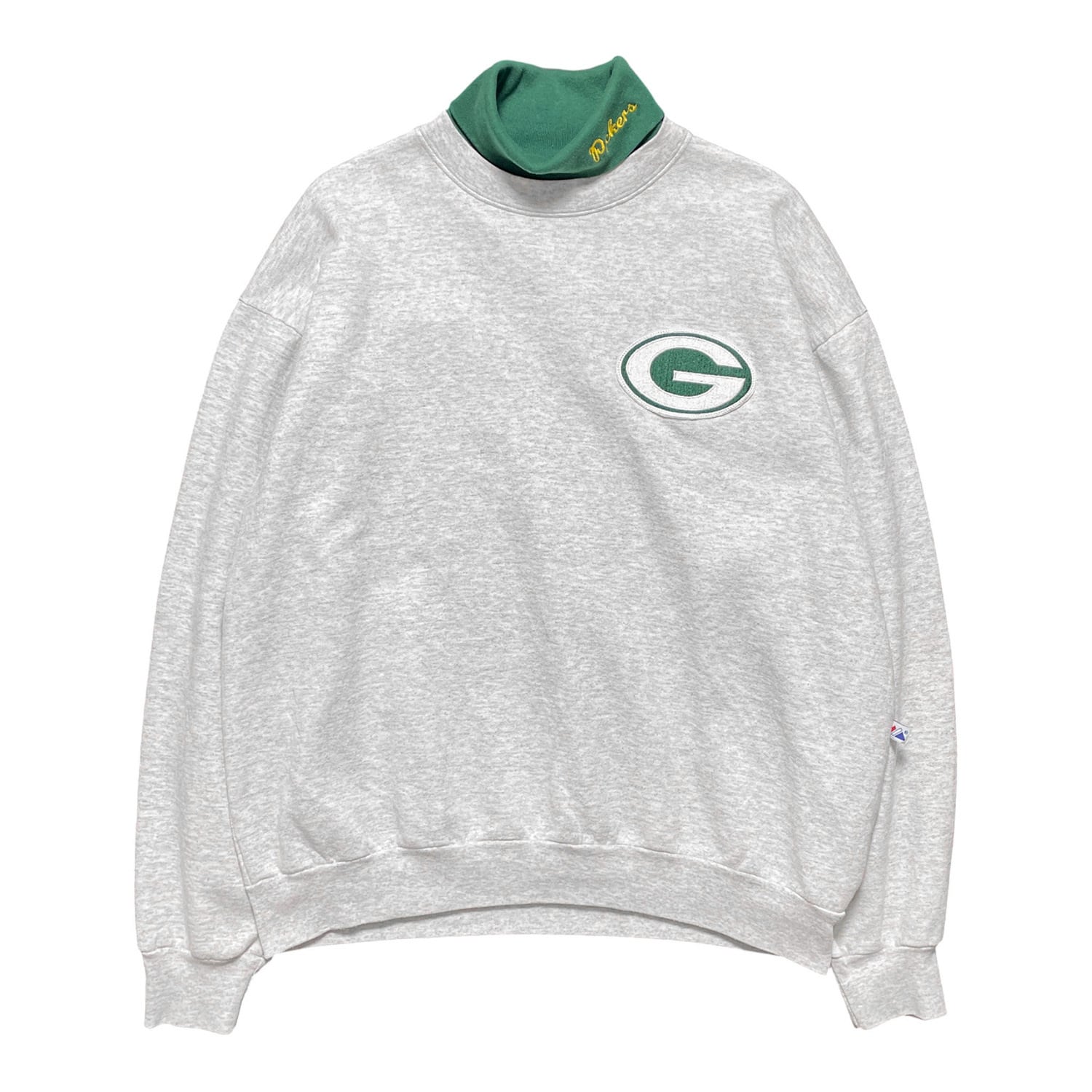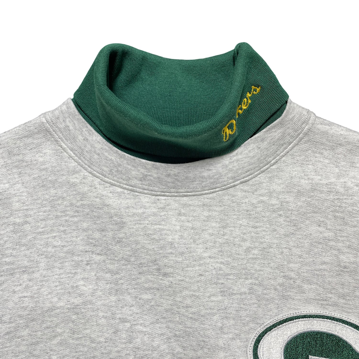古着 USA製 90S NFL グリーンベイパッカーズ ヴィンテージ スウェット トレーナー ロゴ 刺繍 グレー メンズL タートルネック BD2755