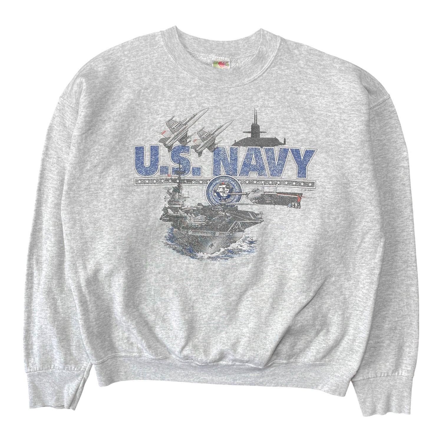 USA 古着 U.S. NAVY 海軍 ミリタリー スウェット トレーナー プリント グレー メンズXL クルーネック BD2746