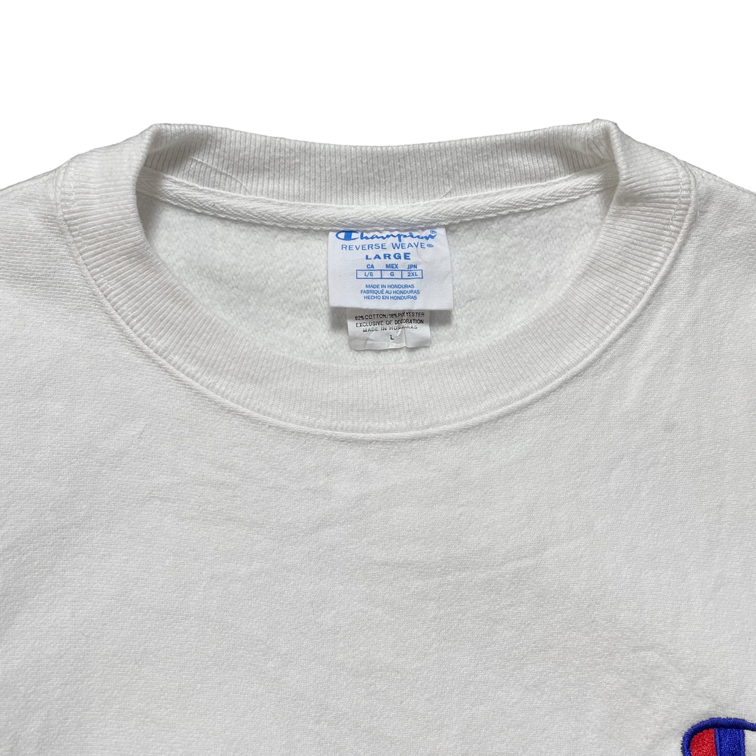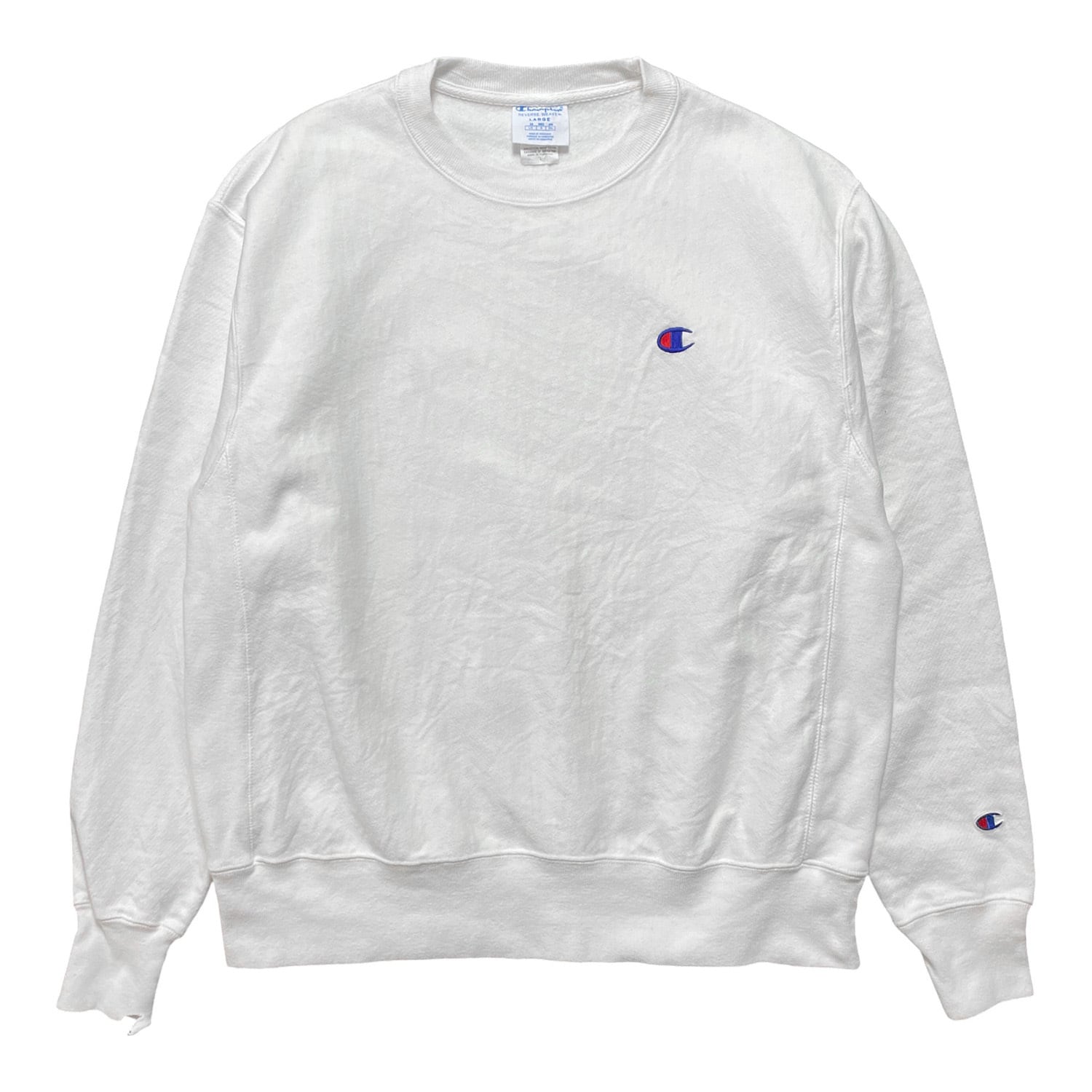 USA 古着 Champion チャンピオン リバースウィーブ スウェット トレーナー ロゴ 刺繍 ロゴ ホワイト メンズL クルーネック BD2712