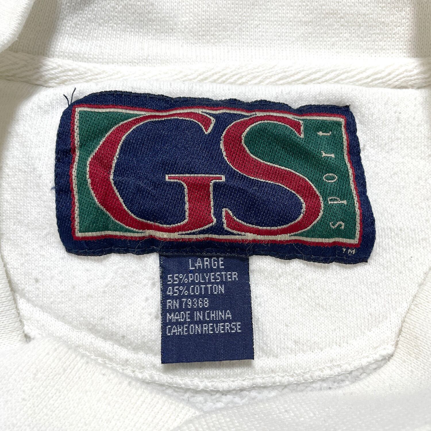 USA 古着 国旗 星条旗 スウェット トレーナー プリント ホワイト メンズL クルーネック BD2711