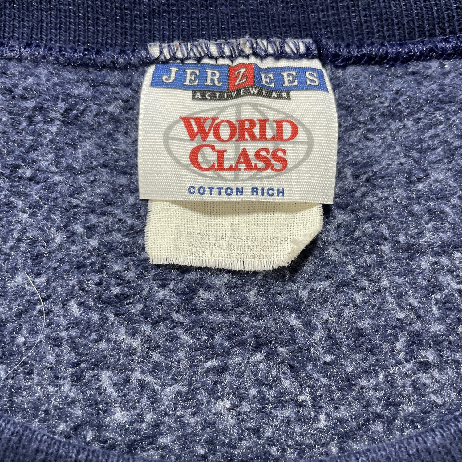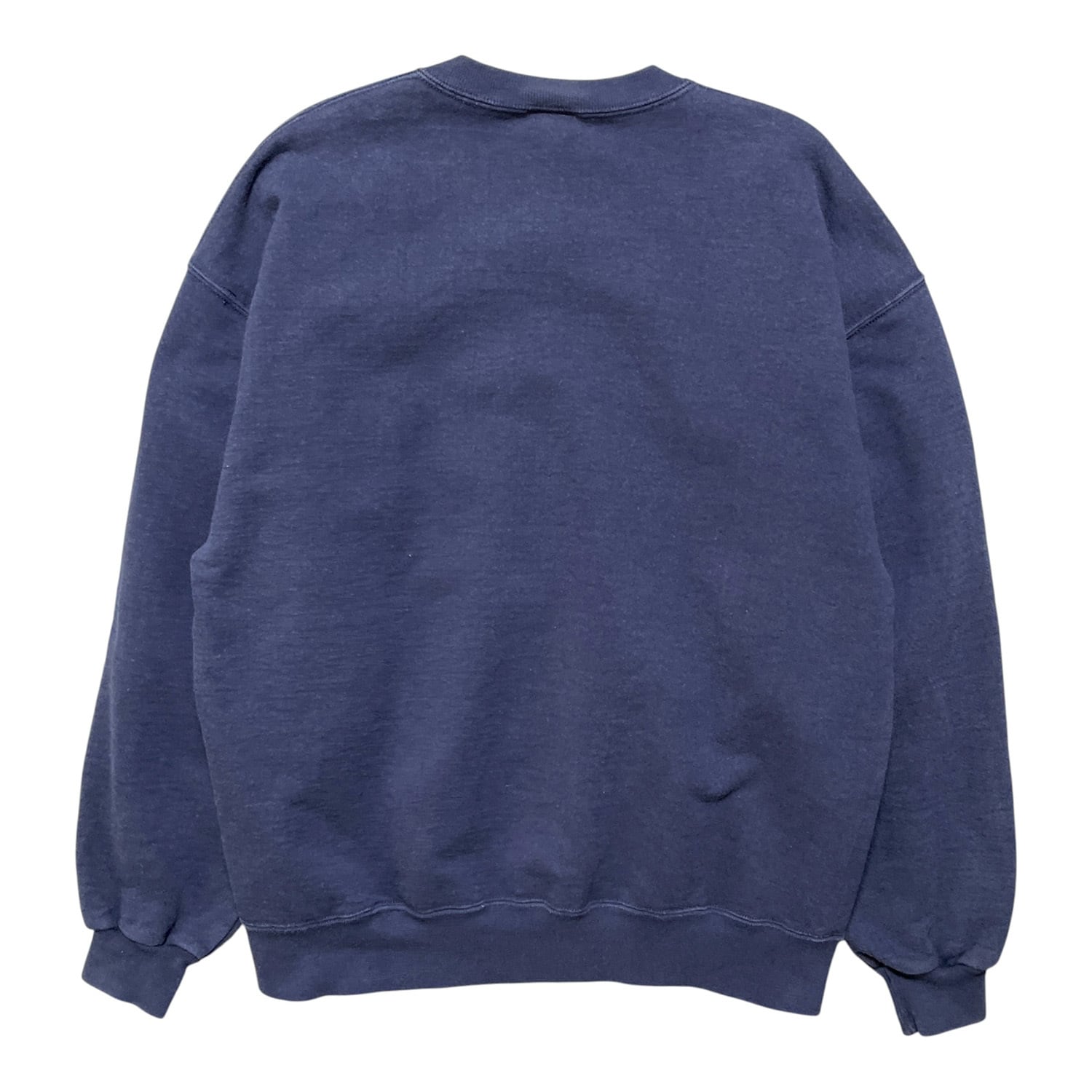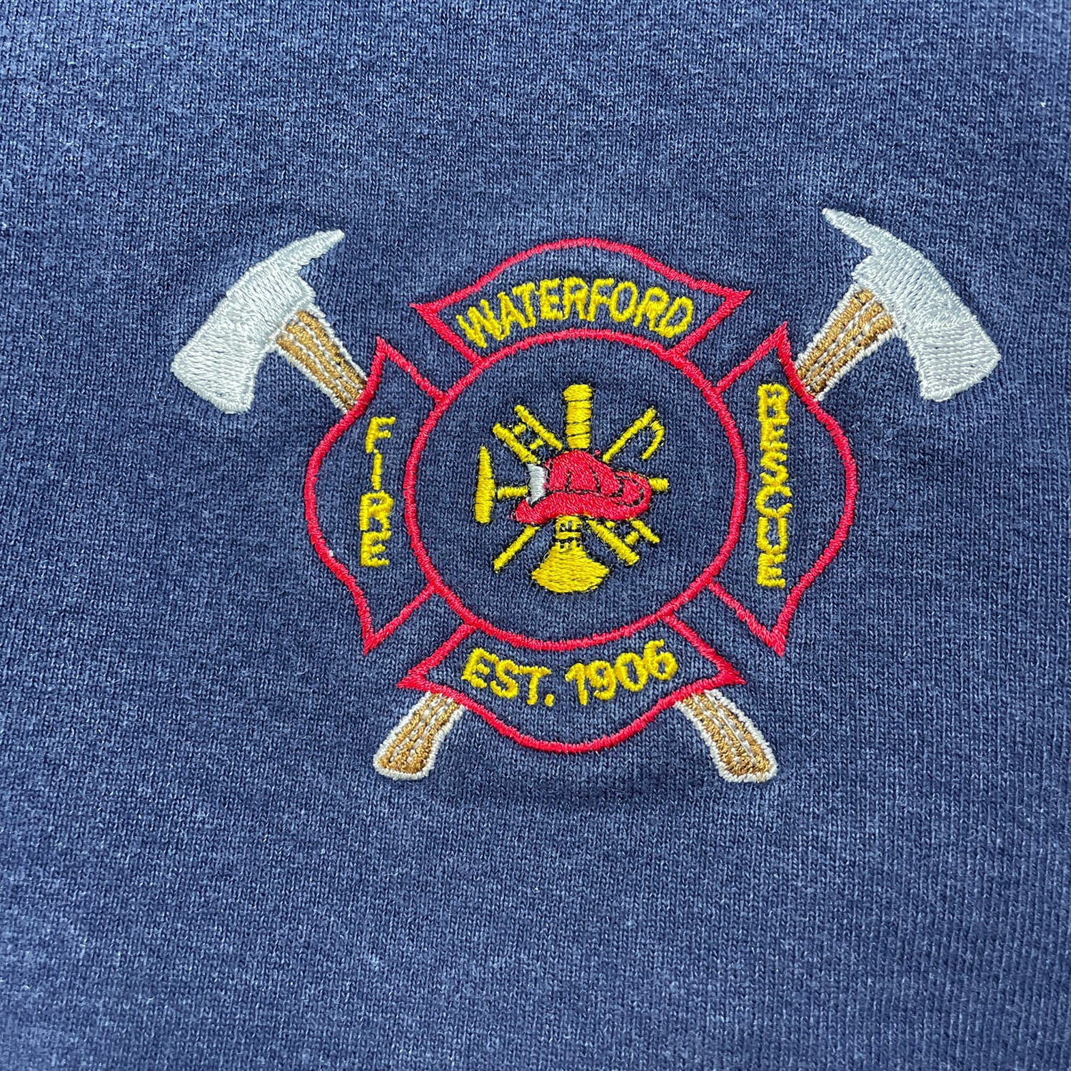 USA 古着 ウォーターフォード消防署 スウェット トレーナー 刺繍 ロゴ ワンポイント 裏起毛 ネイビー メンズL クルーネック BD2683