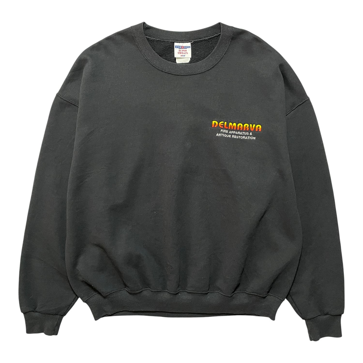 USA 古着 企業系 スウェット トレーナー 刺繍 ロゴ 裏起毛 ブラック メンズXL相当 クルーネック BD2688