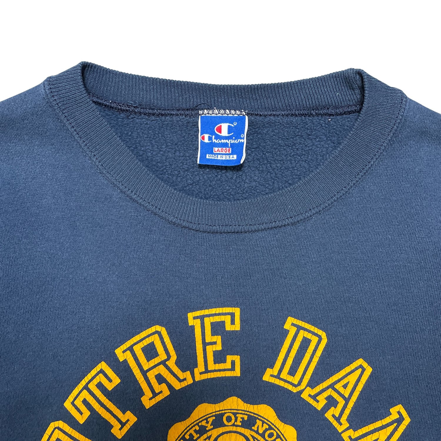 古着 USA製 90S Champion チャンピオン ノートルダム大学 カレッジ ヴィンテージ スウェット トレーナー プリント ネイビー メンズL クルーネック BD2769