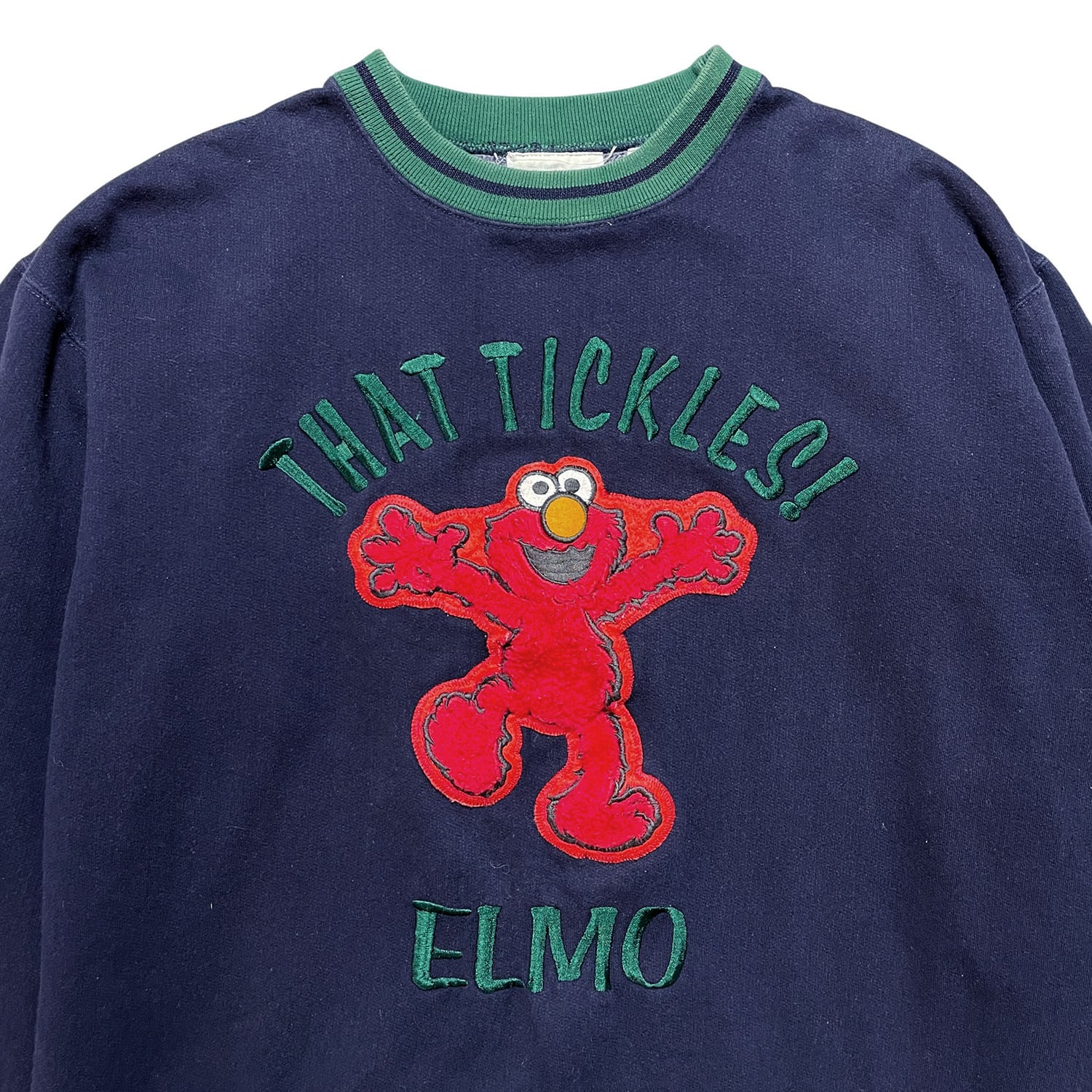 USA 古着 90S セサミストリート エルモ ヴィンテージ スウェット トレーナー 刺繍 ネイビー メンズXL キャラクター クルーネック BD2767