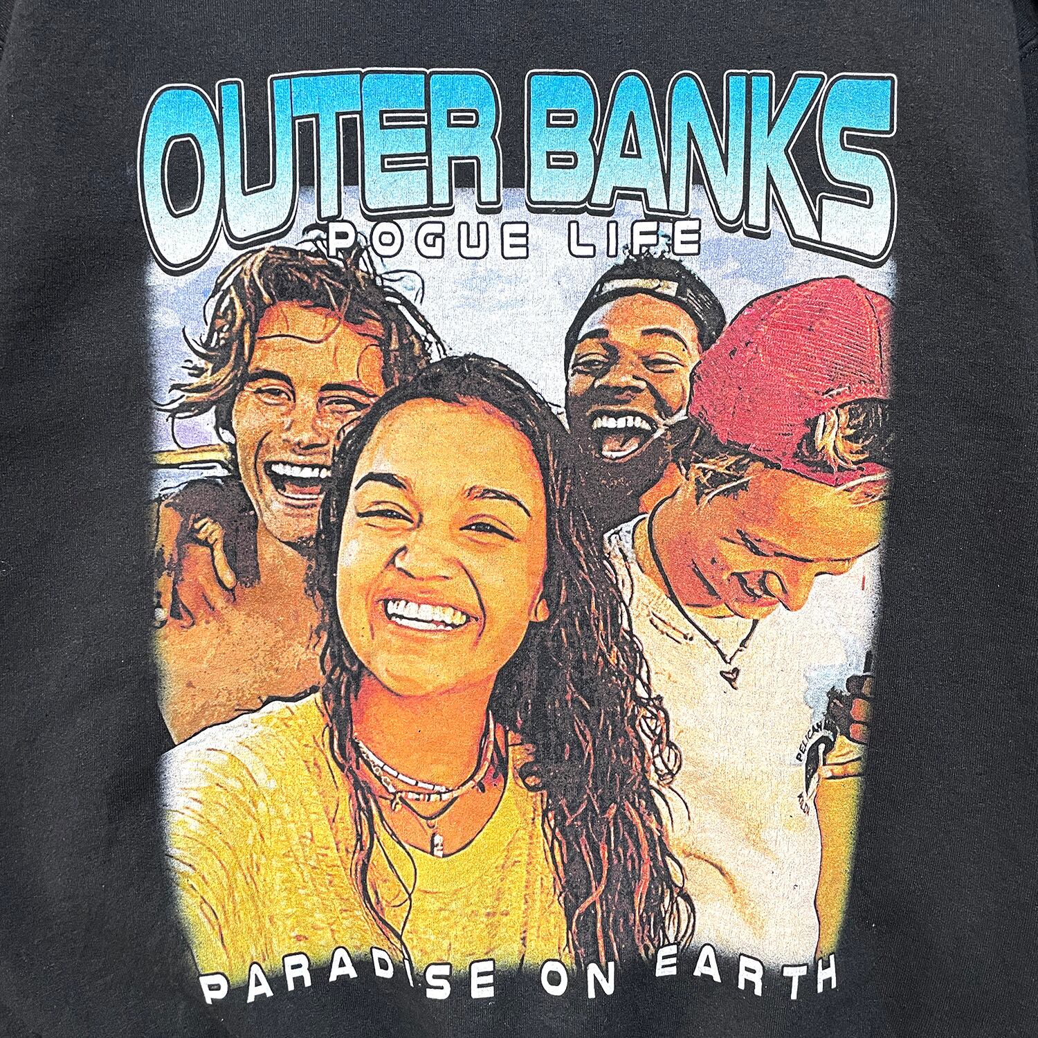 USA 古着 ネットフリックス ドラマ アウターバンクス スウェット トレーナー プリント ブラック メンズM BD2795