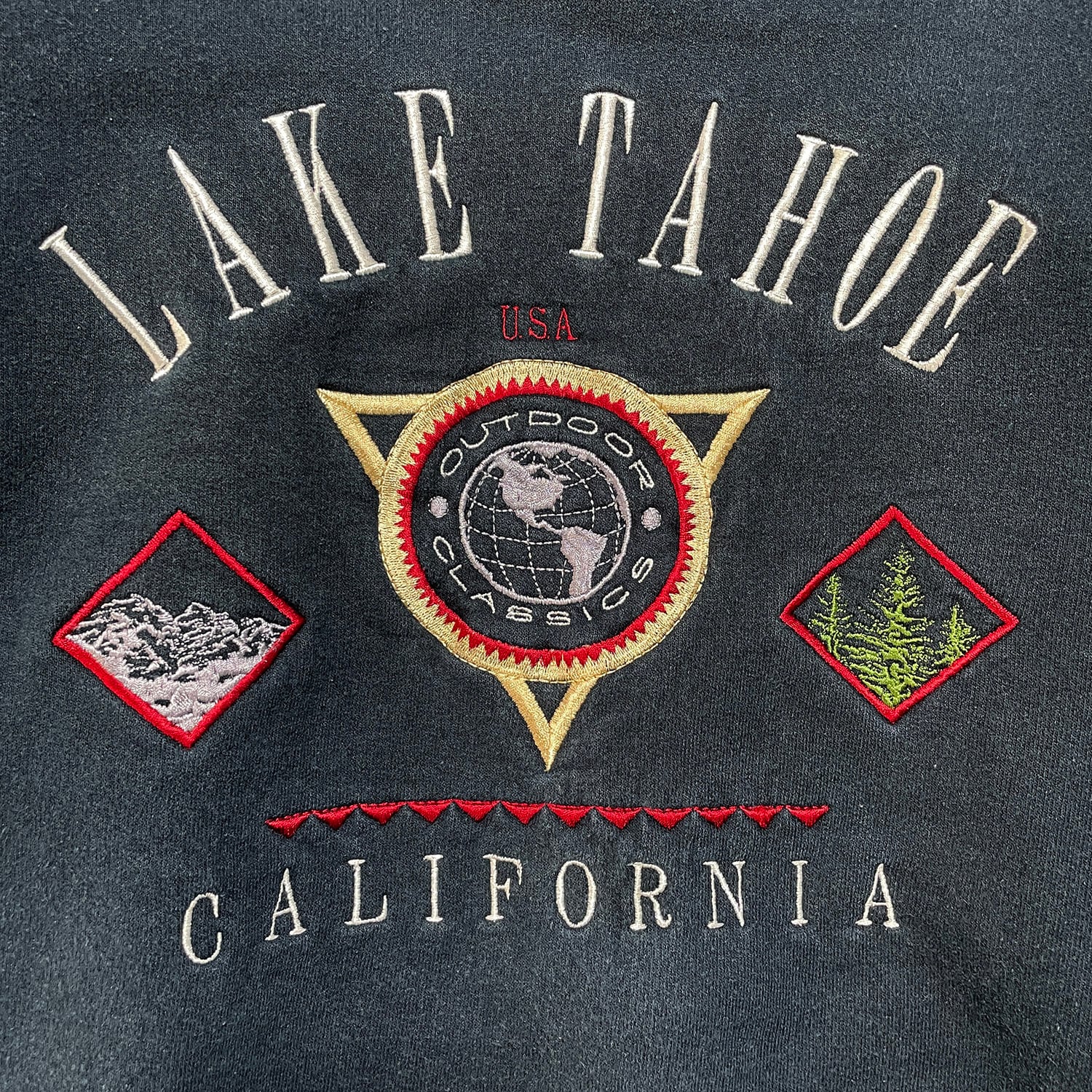 USA 古着 レイクタホ スウェット トレーナー 刺繍 ブラック メンズS クルーネック BD2792