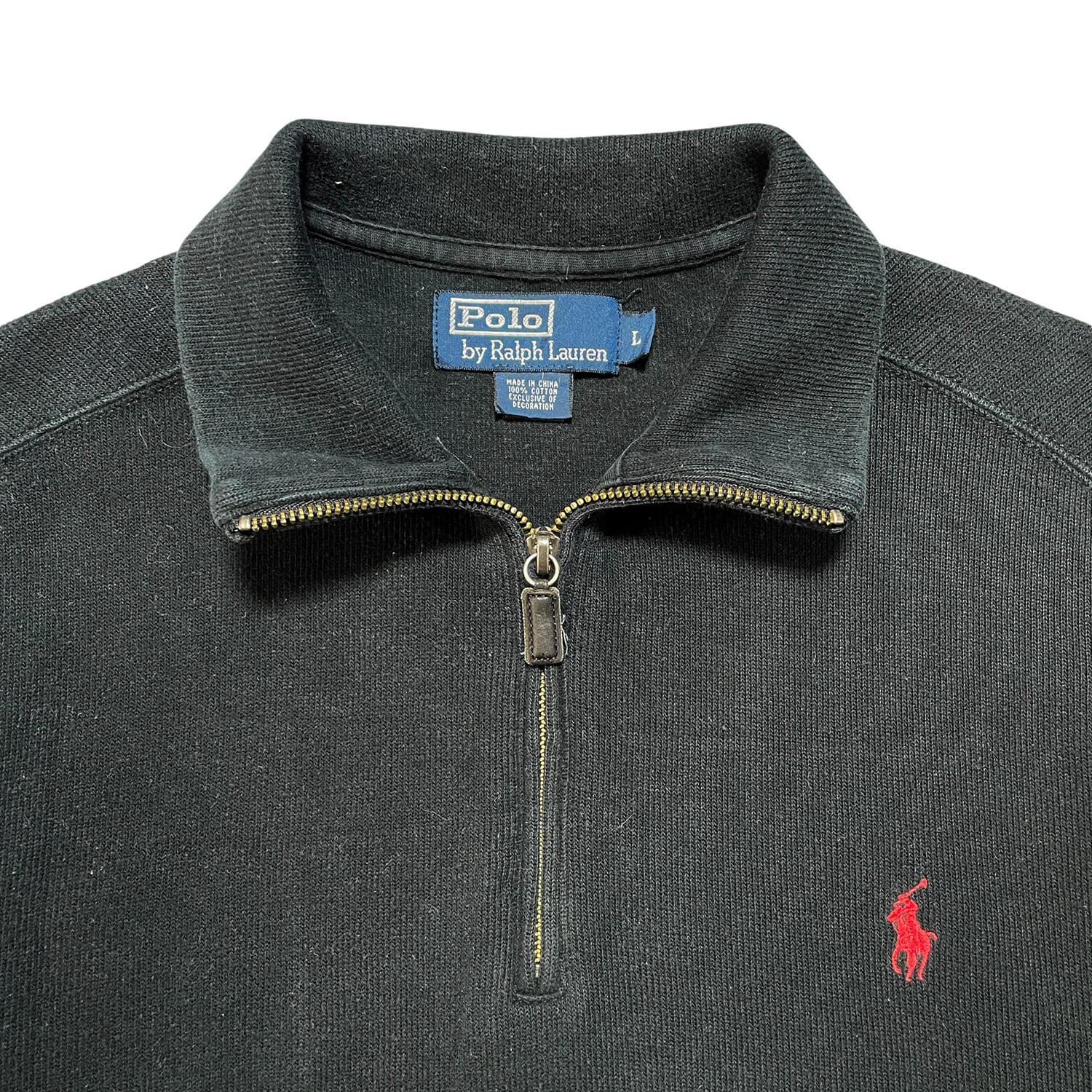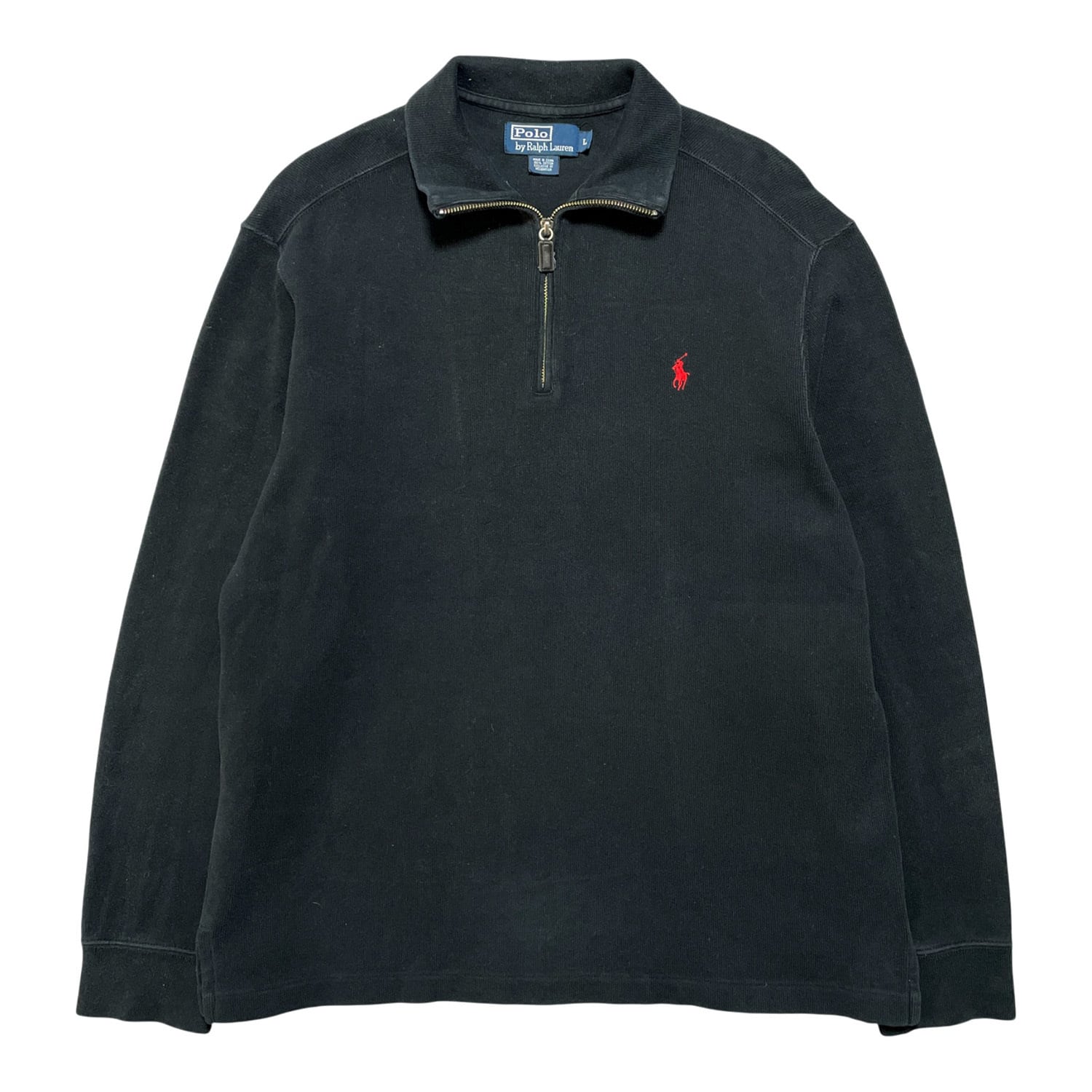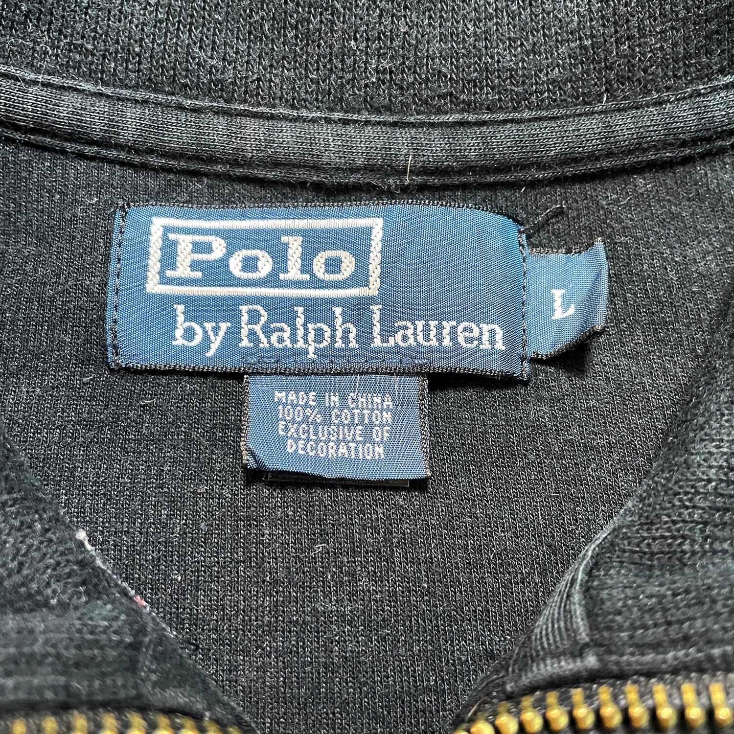 USA 古着 POLO by RALPH LAUREN ポロバイラルフローレン コットンニット ハーフジップ スウェット トレーナー ブラック メンズL 黒色 BD2786