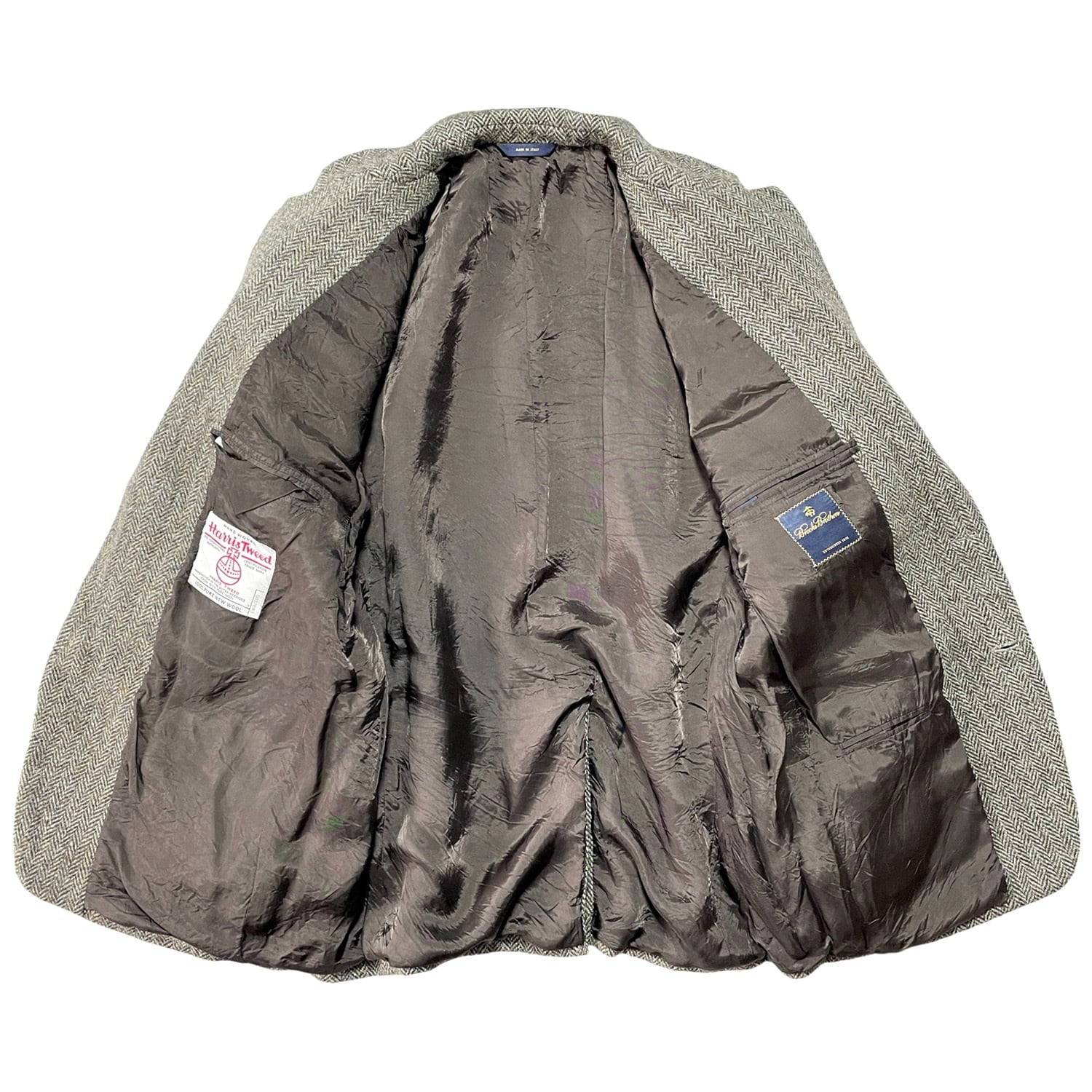 イタリア製 Harris Tweed Brooks Brothers ハリスツイード ブルックスブラザーズ ツイードウール テーラードジャケット メンズ43 AF0032