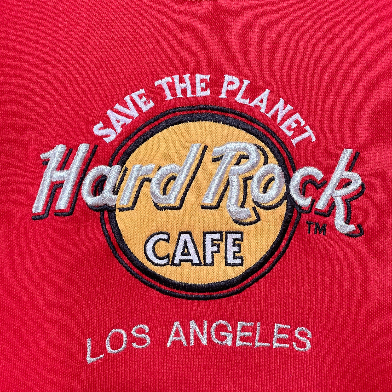 古着 USA製 90S Hard Rock Cafe ハードロックカフェ ヴィンテージ スウェット トレーナー 刺繍 ロゴ レッド メンズM BD2774