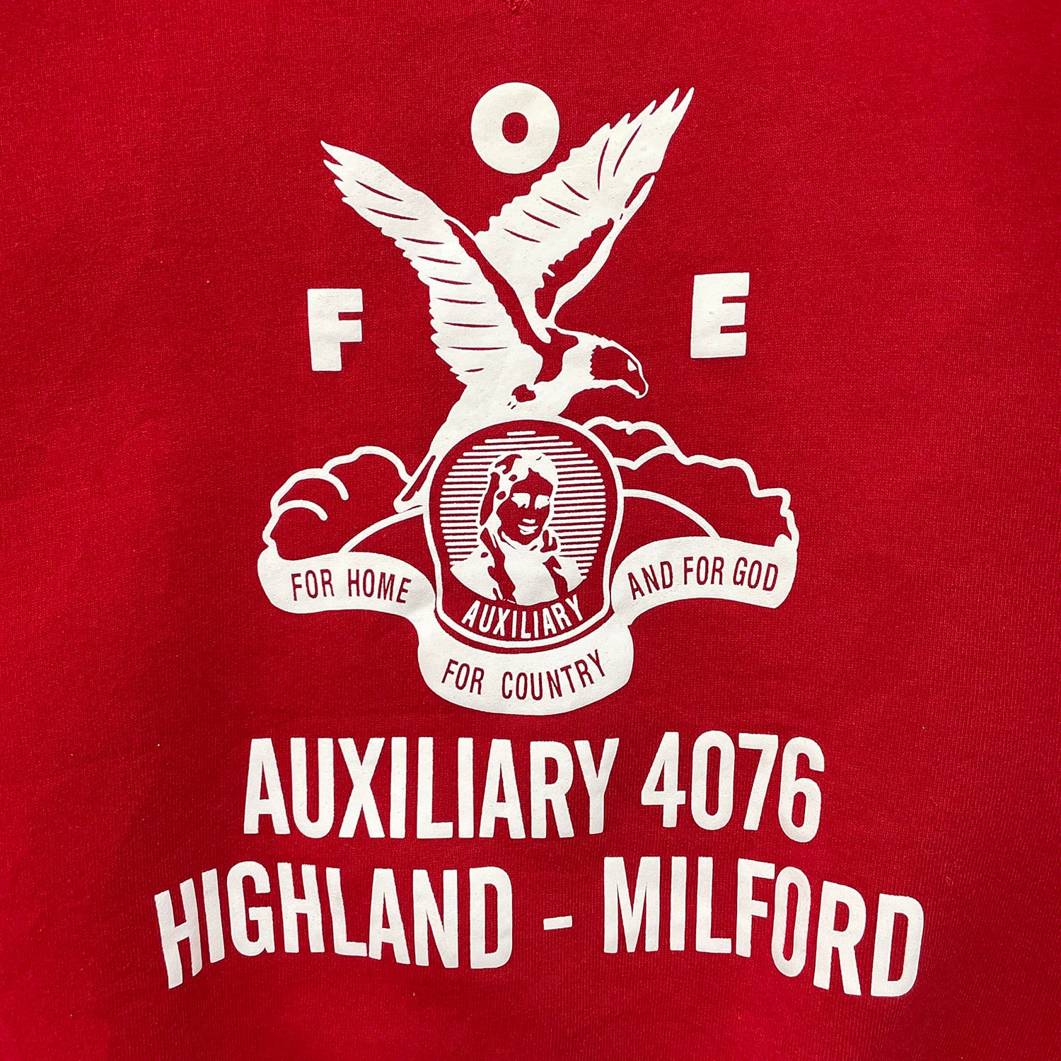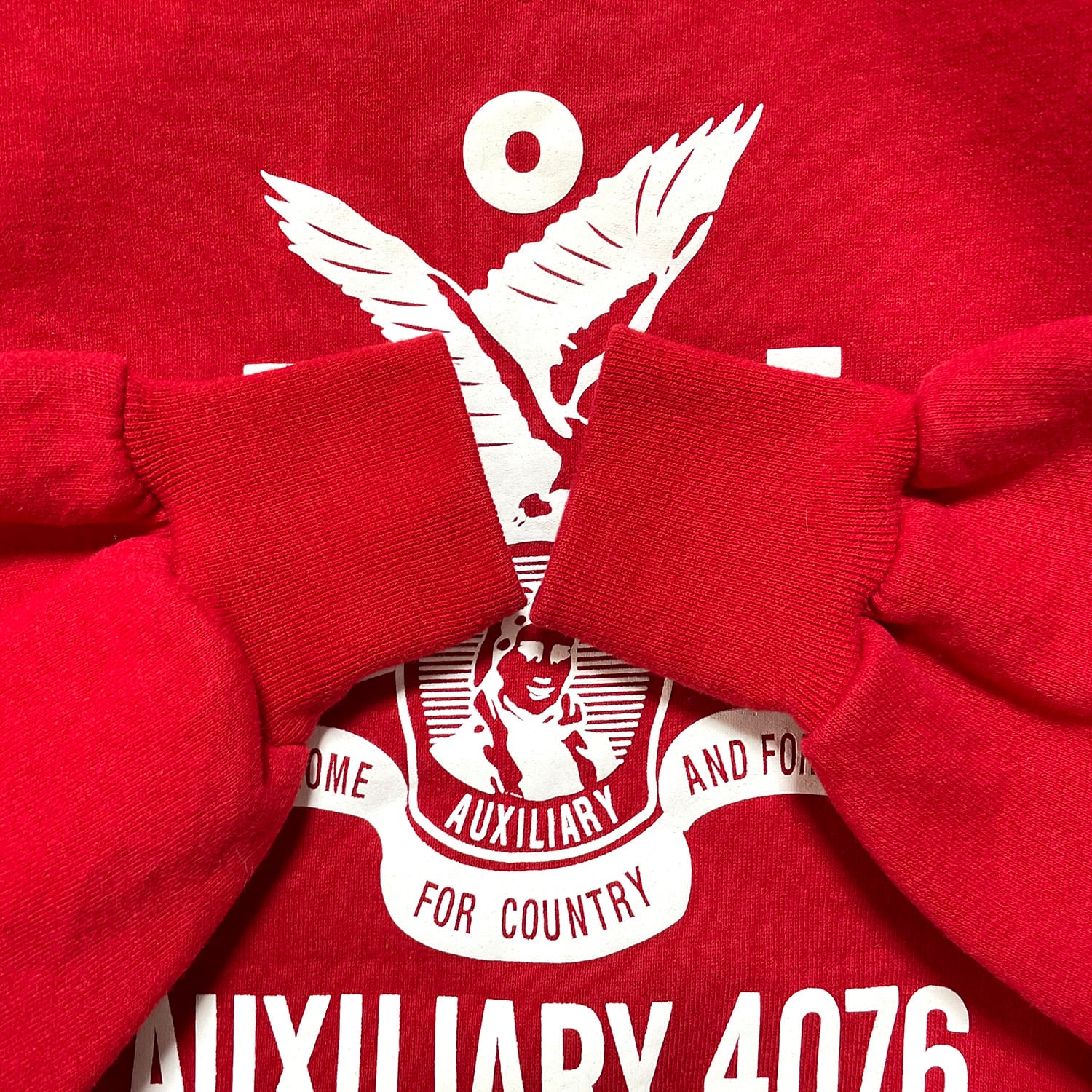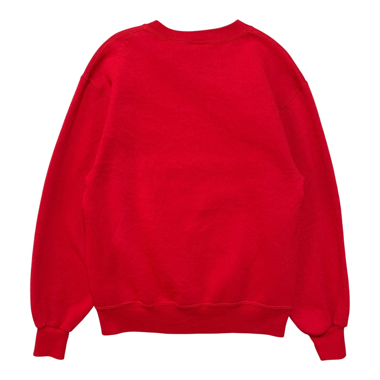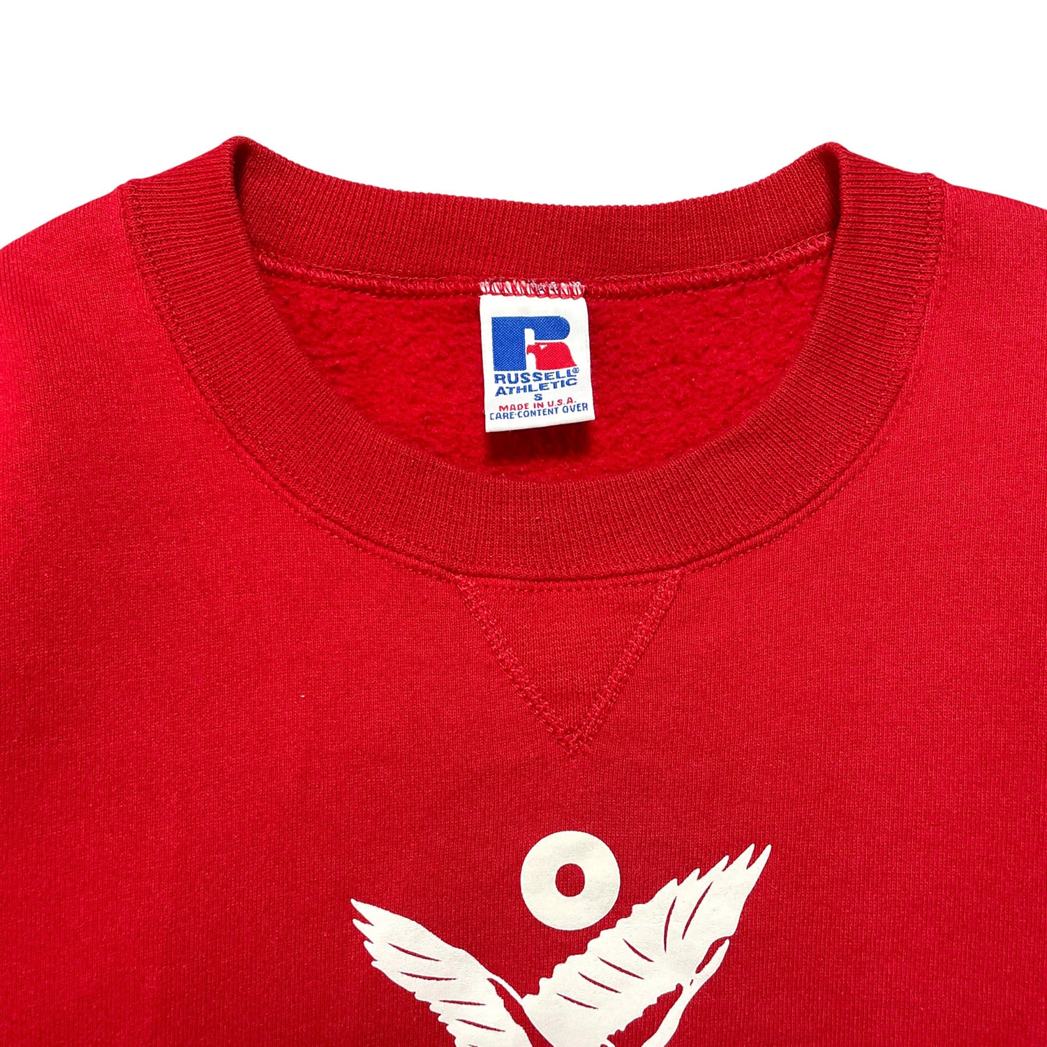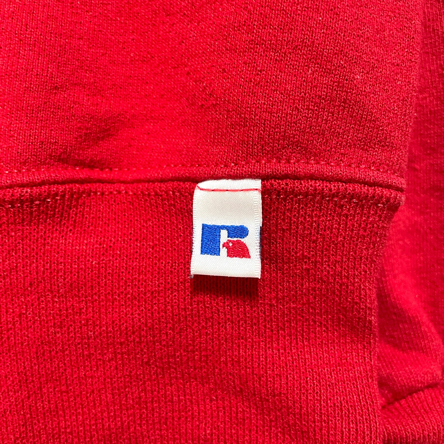 古着 USA製 90S Russell ラッセル ヴィンテージ 前V スウェット トレーナー プリント レッド メンズS クルーネック BD2772