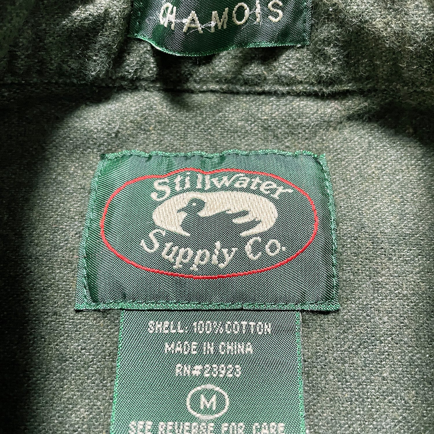 USA 古着 Stillwater Supply Co. ヴィンテージ アウトドア シャモアクロス コットン 長袖シャツ 深緑色 メンズM グリーン BG1054