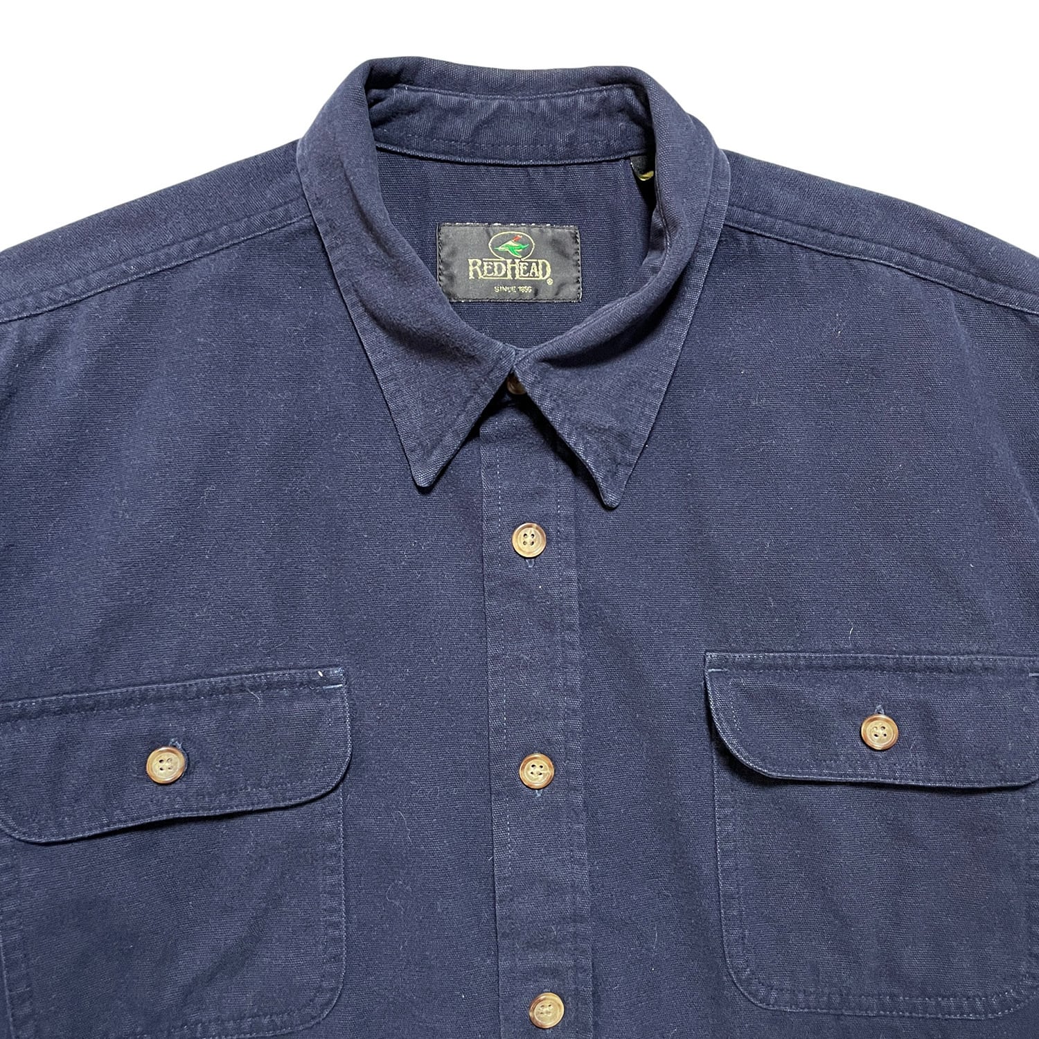 USA 古着 REDHEAD レッドヘッド ヴィンテージ アウトドア ダックコットン 長袖シャツ メンズL ネイビー 紺色 無地 BG1055