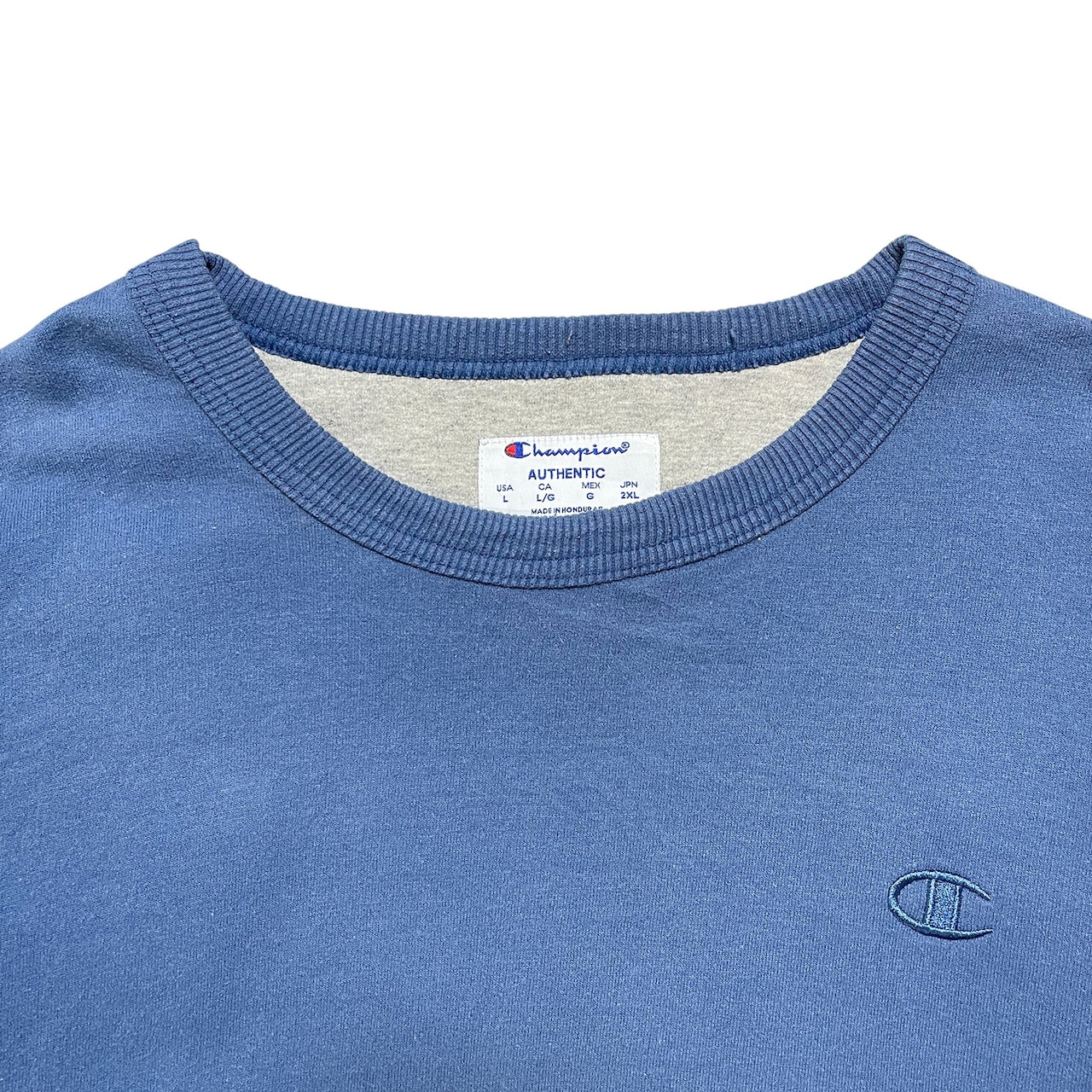 USA 古着 Champion チャンピオン ロゴ 刺繍 クルーネック スウェット トレーナー ブルー メンズL BD2822