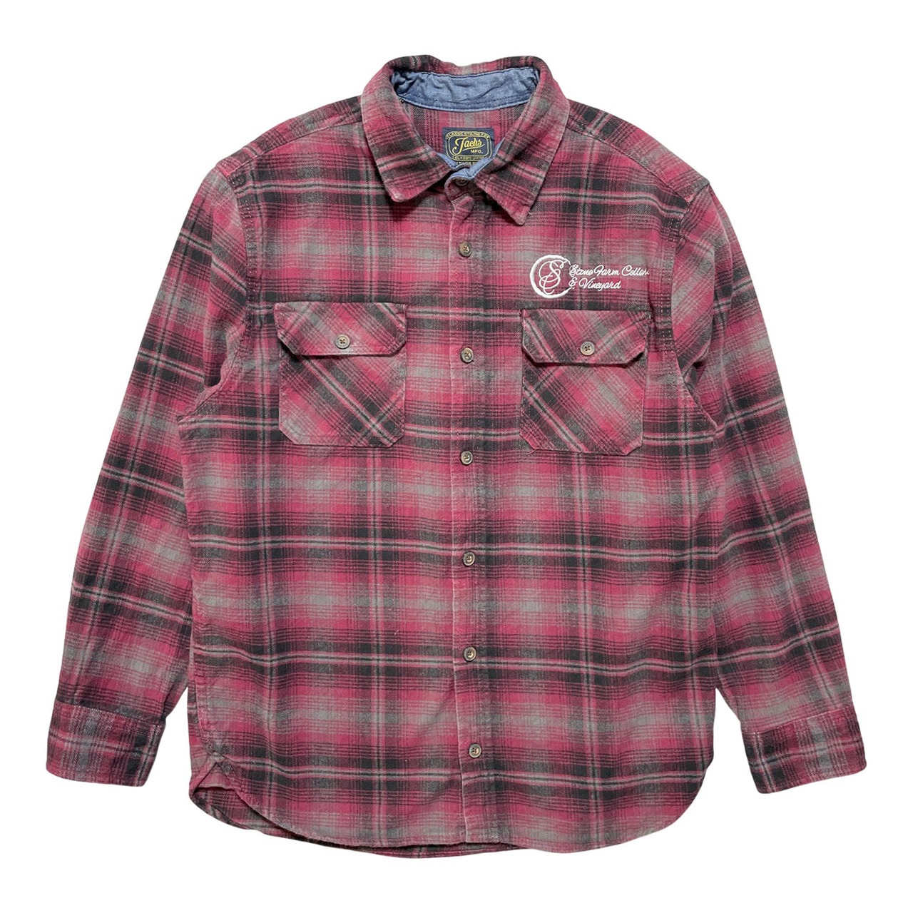 USA 古着 Jachs ヴィンテージ ヘリテージ フランネル コットン チェック柄 長袖シャツ 刺しゅうロゴ ネルシャツ メンズM マルーン系 BG1035