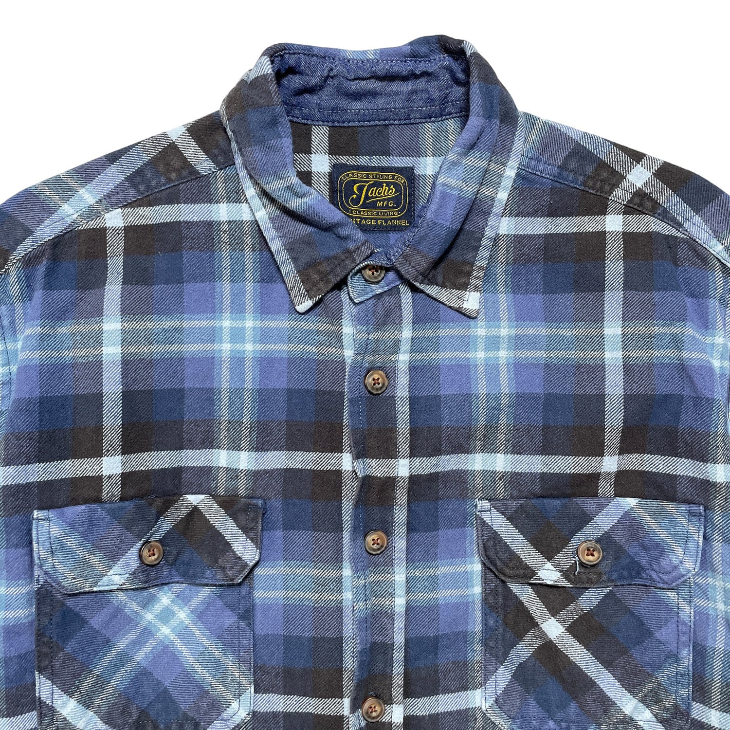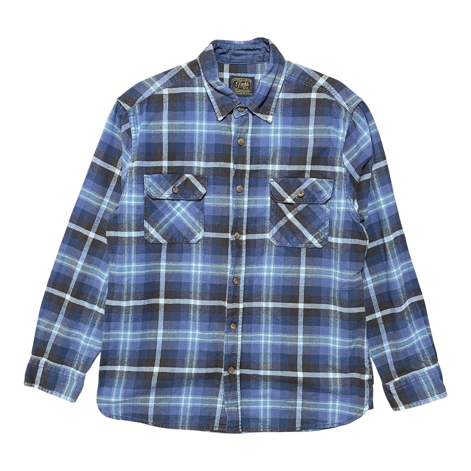 USA 古着 Jachs ヴィンテージ ヘリテージ フランネル コットン チェック柄 長袖シャツ ネルシャツ メンズL ブルーネイビー系 BG1037