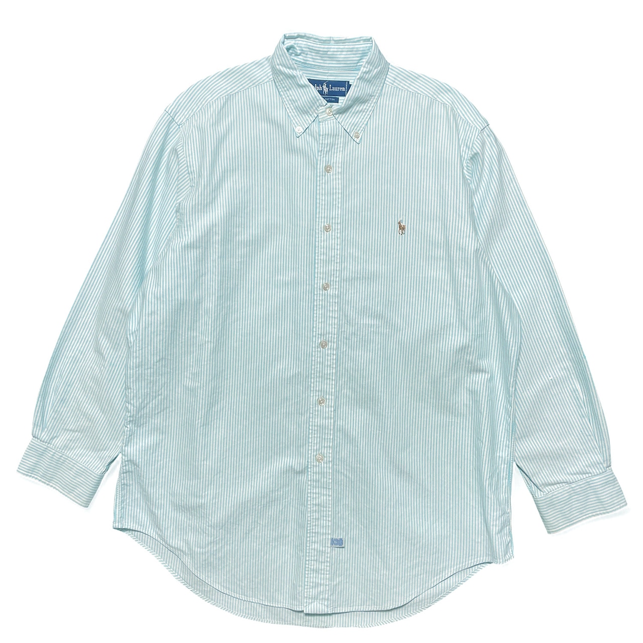 USA 古着 Ralph Lauren ラルフローレン オックスフォード コットン ストライプ BDシャツ 長袖シャツ ブルー メンズ16 1/2 BG1062