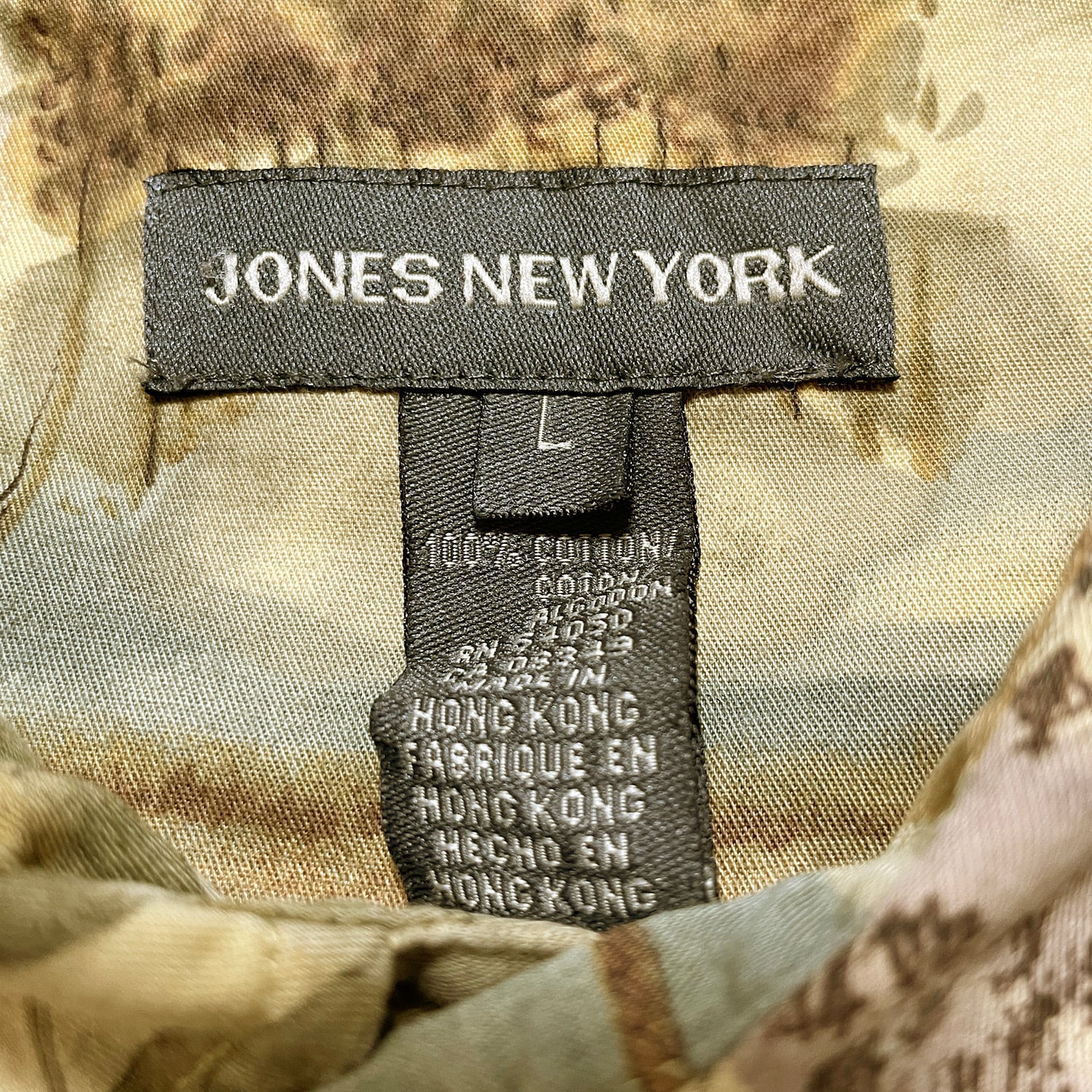 USA 古着 Jones New York コットン 柄シャツ 長袖シャツ 風景画 総柄 ブラウン メンズL BG1063