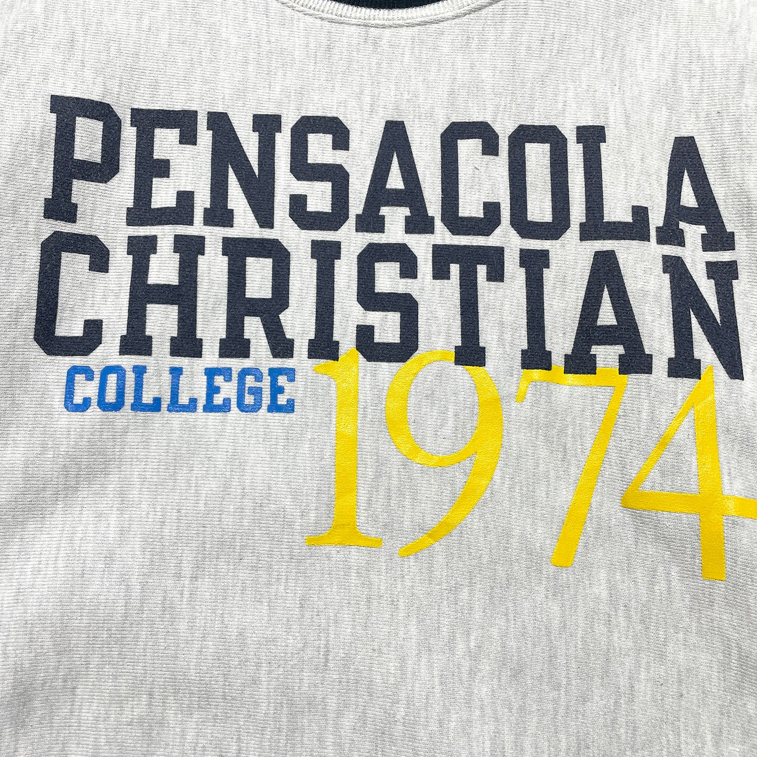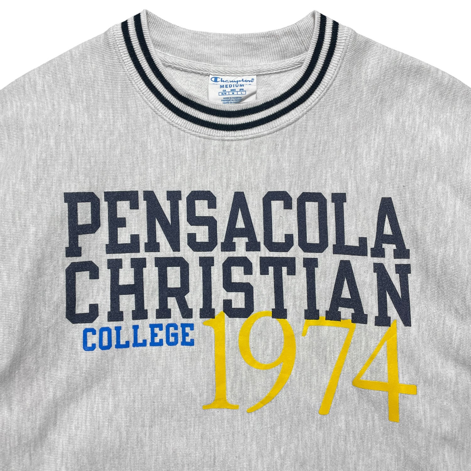 USA 古着 Champion チャンピオン リバースウィーブ ペンサコーラクリスチャン大学 カレッジ スウェット トレーナー プリント グレー メンズM BD2865