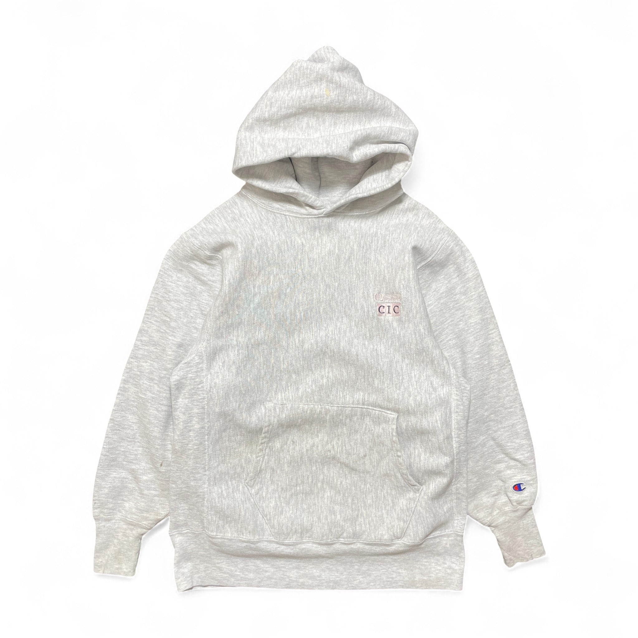 古着 USA製 90S Champion チャンピオン 刺繍タグ ヴィンテージ リバースウィーブ スウェット パーカー 企業系 刺繍 グレー メンズL BE0846