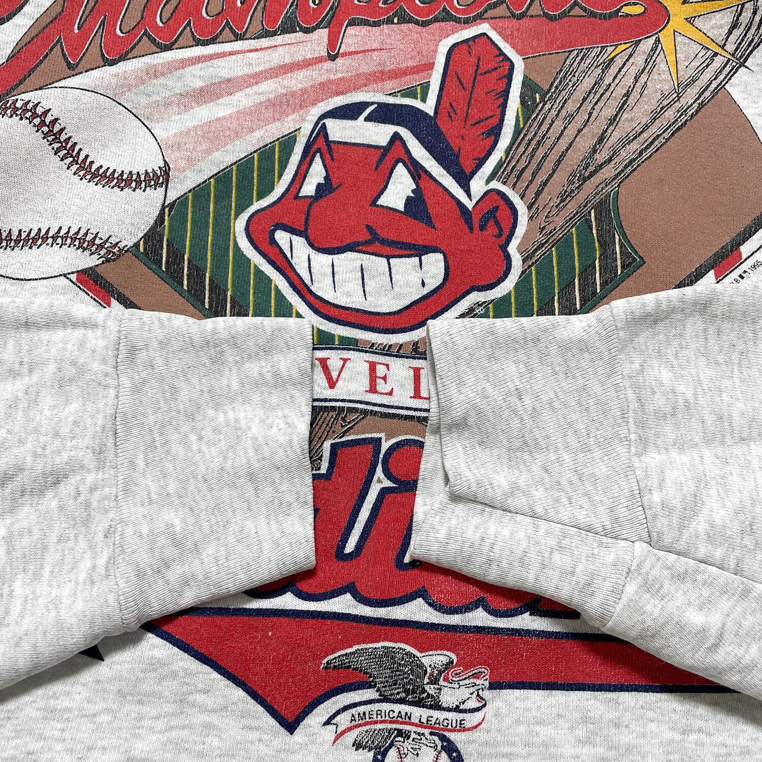 古着 USA製 90S スターター MLB クリーブランドインディアンス ヴィンテージ スウェット トレーナー ロゴ プリント メンズXL グレー BD2868