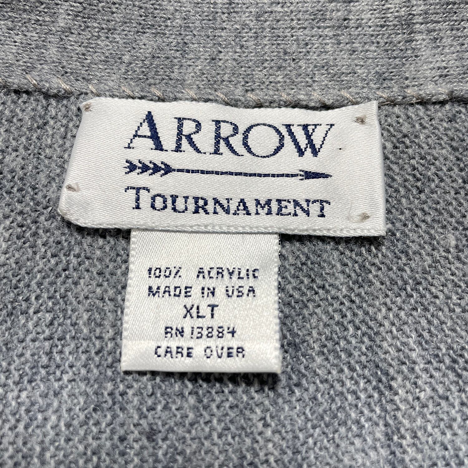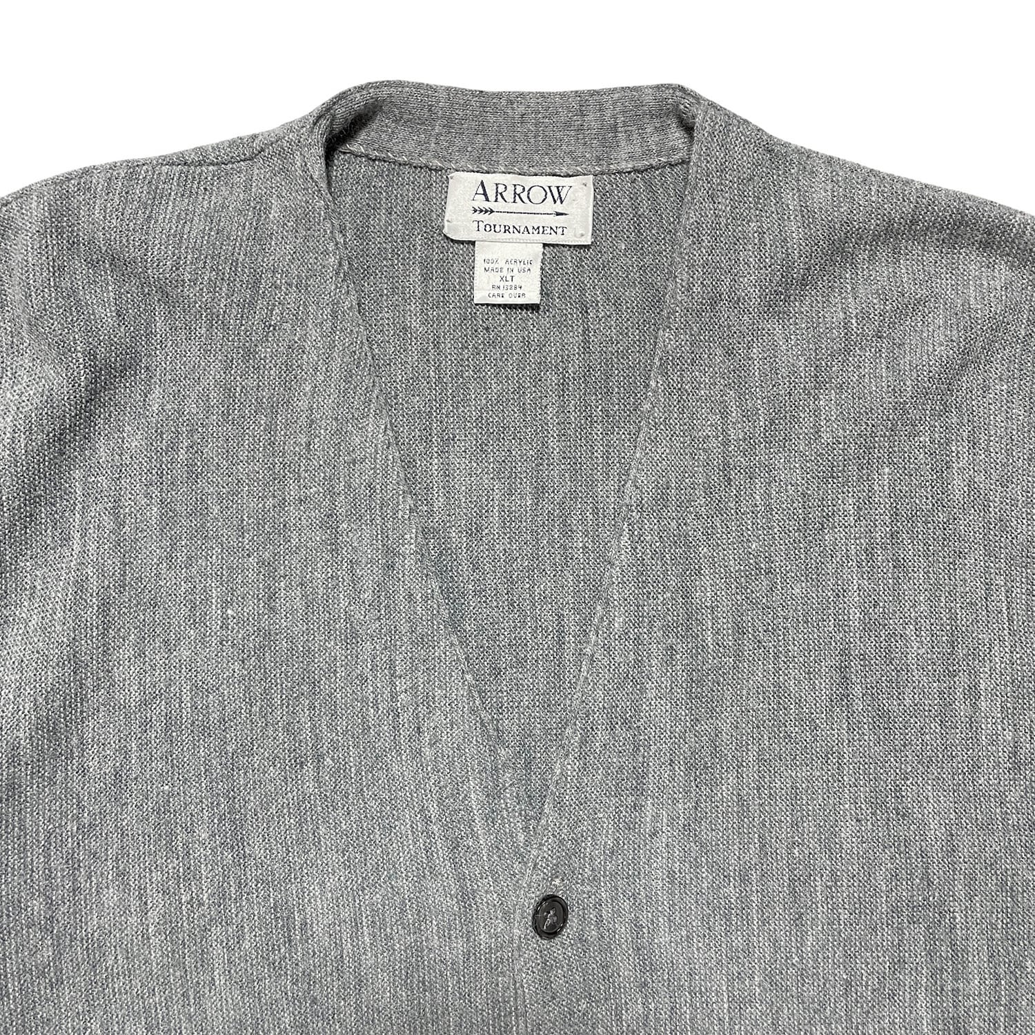 古着 USA製 ARROW TOUNAMENT アロー ヴィンテージ アクリルニット カーディガン グレー 無地 メンズXL BH0373