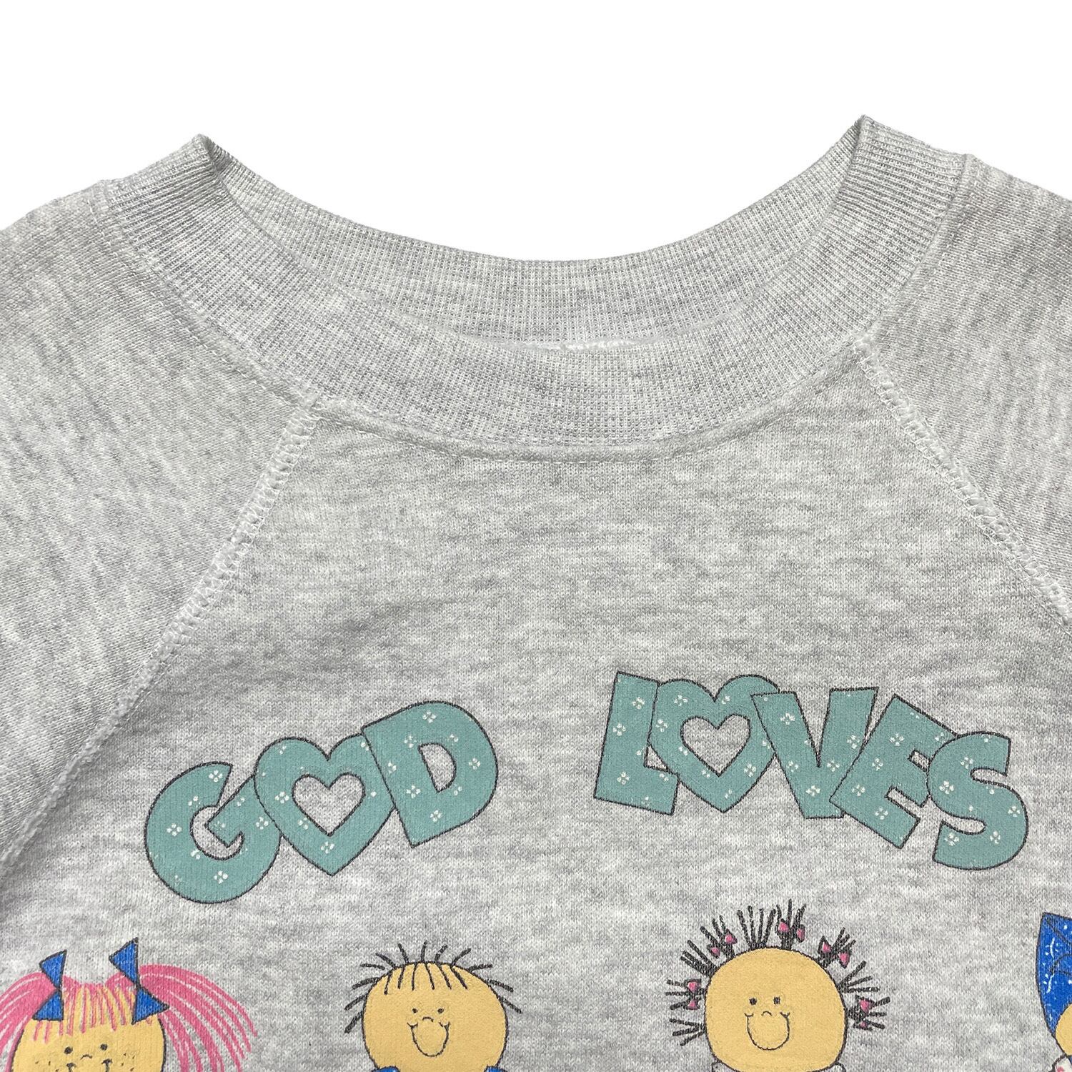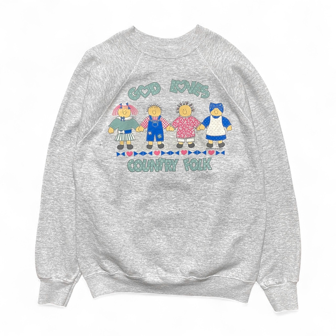 古着 USA製 90S ヴィンテージ ダサかわ クルーネック スウェット トレーナー プリント グレー レディースL BD2849