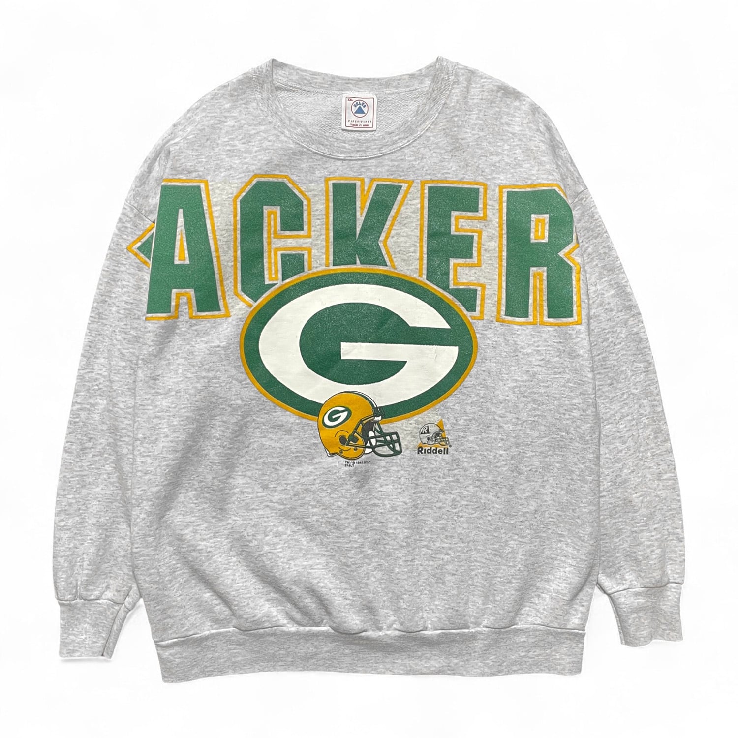 古着 USA製 90S NFL グリーンベイパッカーズ クルーネック ヴィンテージ スウェット トレーナー ロゴ プリント グレー メンズXXL BD2844