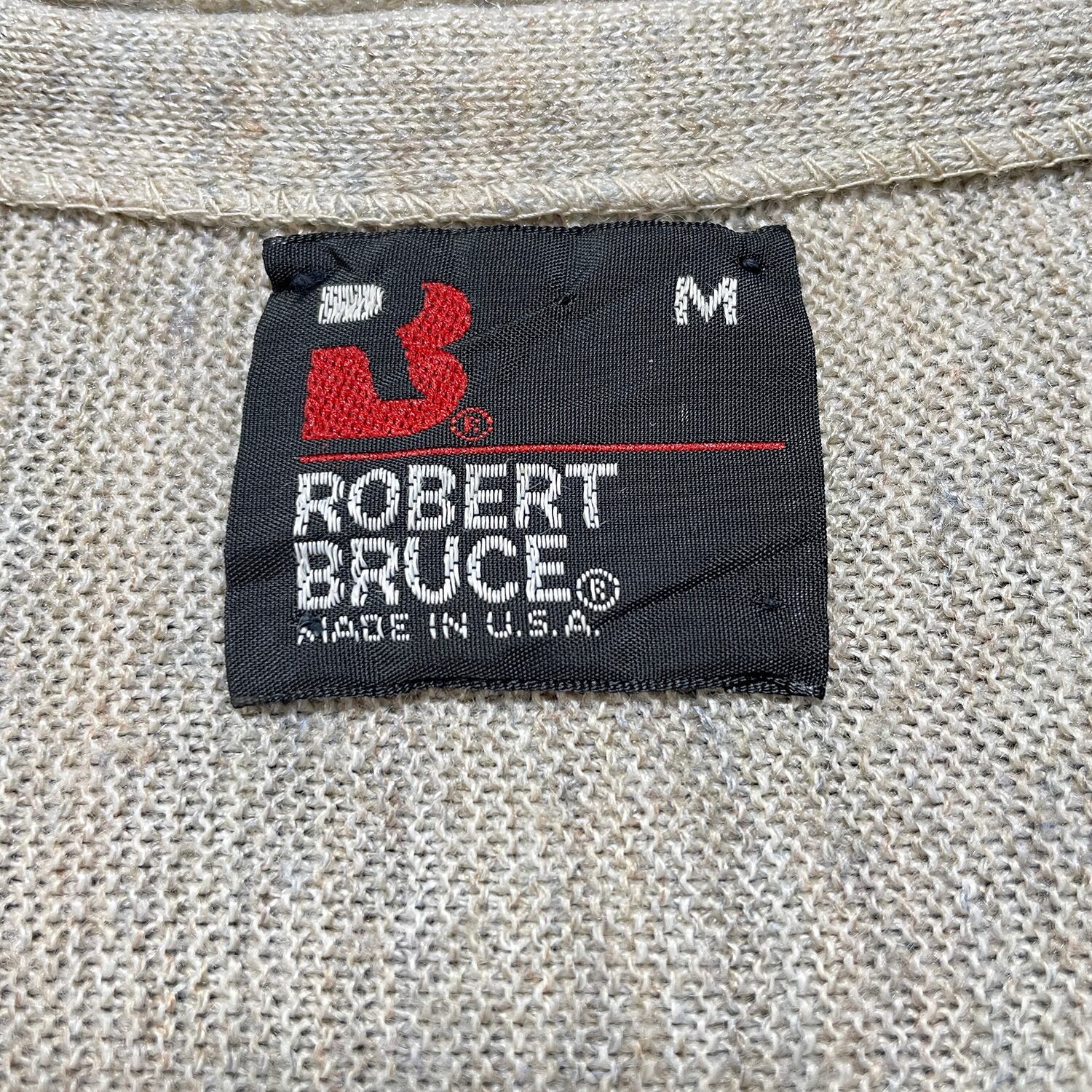 USA 古着 USA製 ROBERT BRUCE ヴィンテージ ロバートブルース アクリルニット カーディガン 無地 ベージュ系 メンズM BH0410