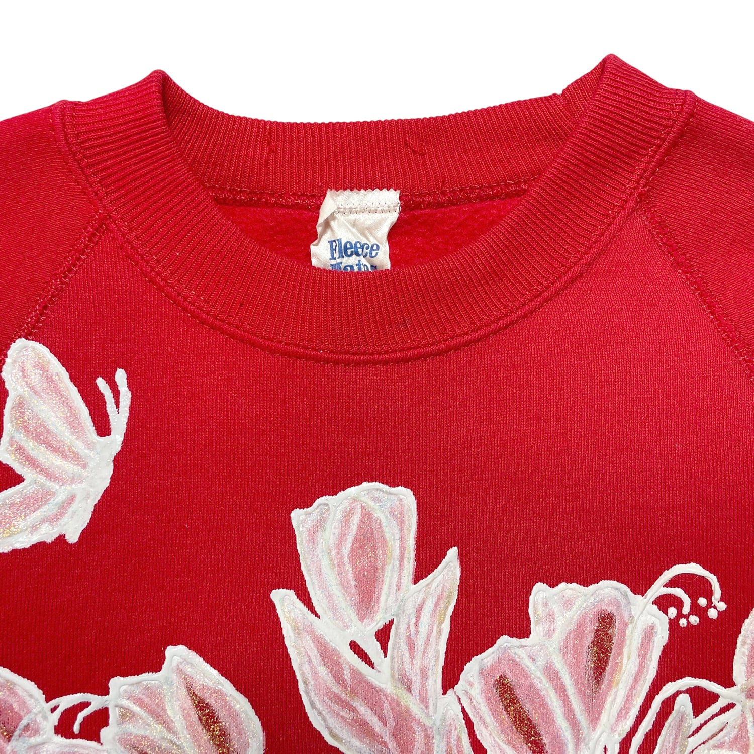古着 USA製 90S ハンドペイント クルーネック ヴィンテージ スウェット トレーナー レッド レディースL BD2832